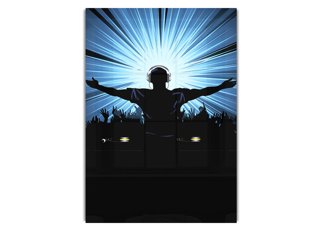 DJ Blue Sun Lights acrylic print, UV printed onto 5mm thick acrylic glass. Comes with everything you need to hang on your wall.