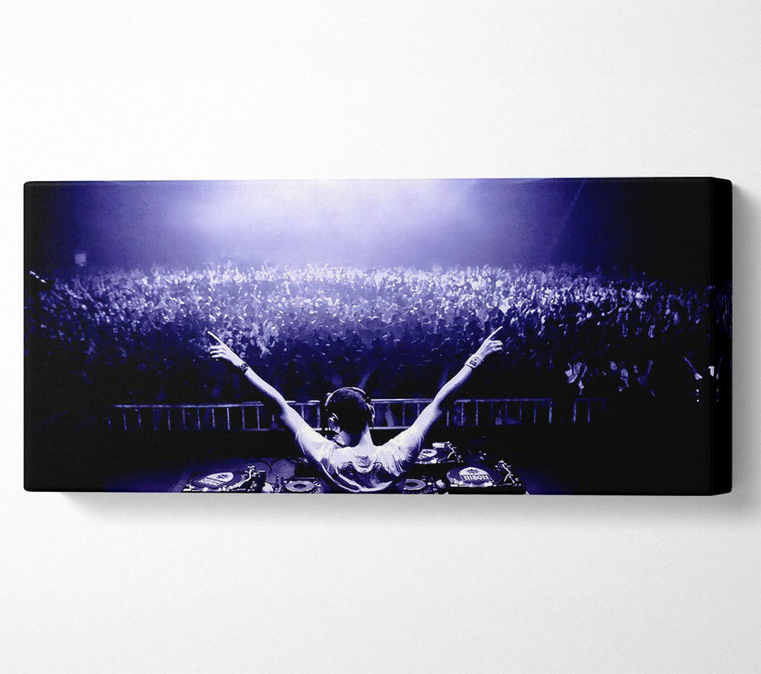 DJ Party canvas, printed on coated polyester canvas. Mounted on to a 44mm box frame, ready to hang.