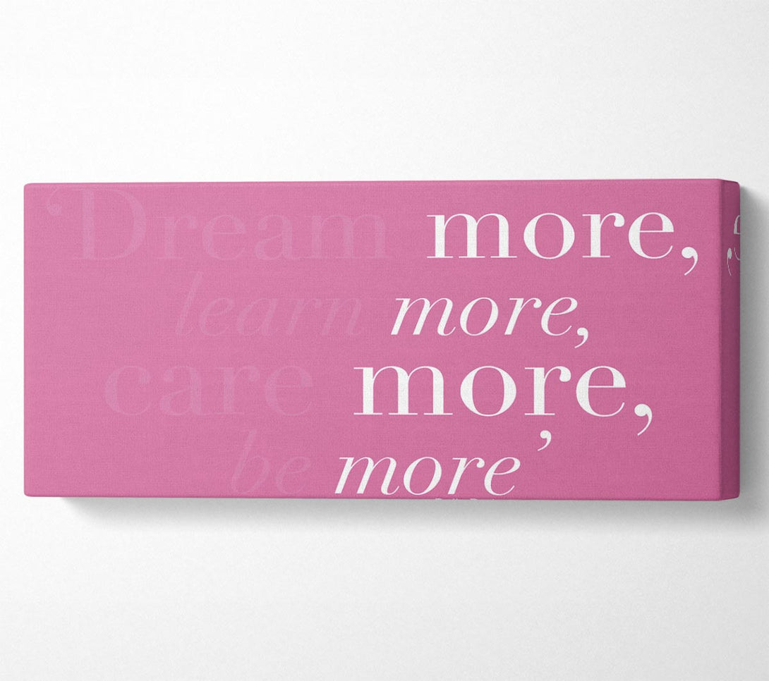 Dolly Parton Dream More Be More Pink canvas, printed on coated polyester canvas. Mounted on to a 44mm box frame, ready to hang.