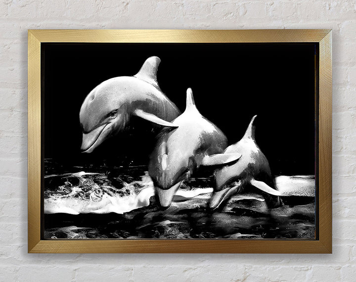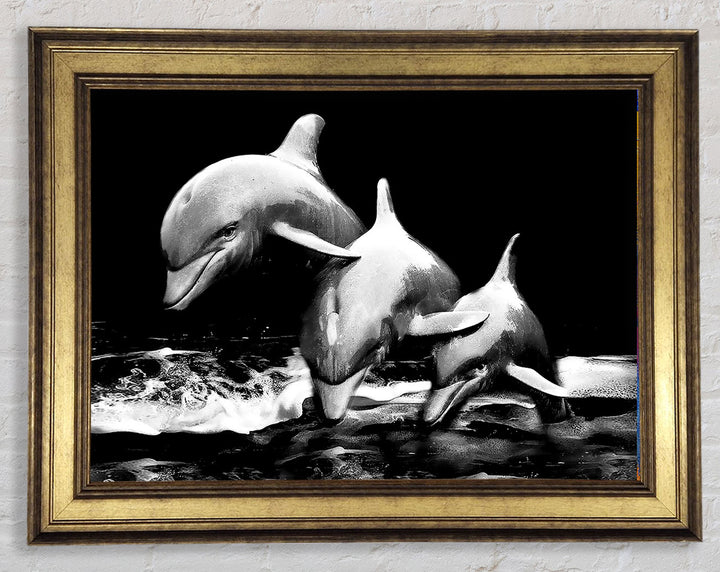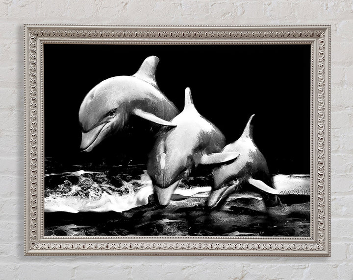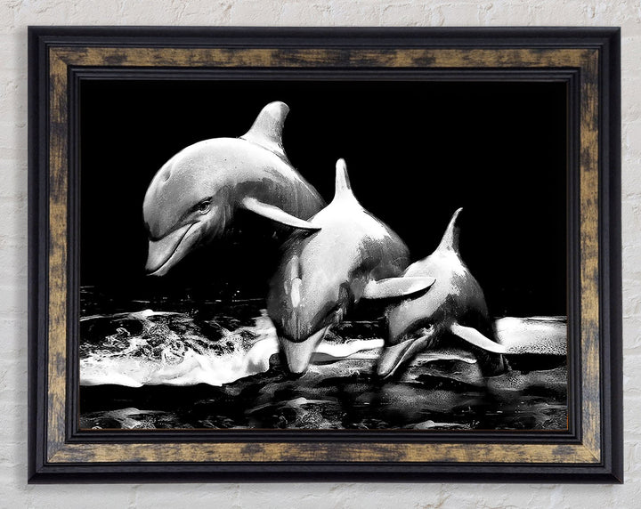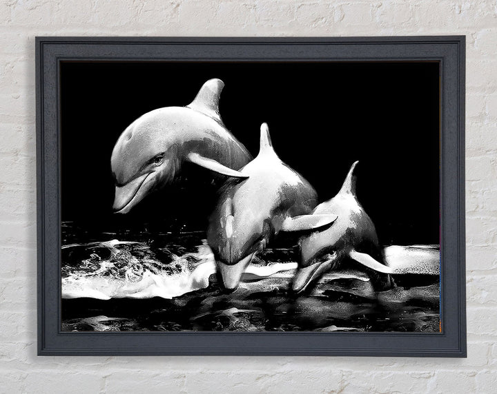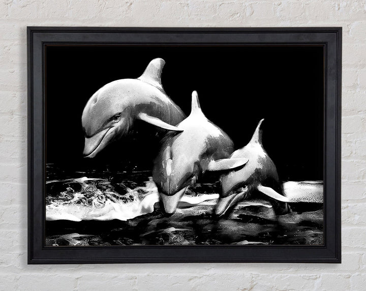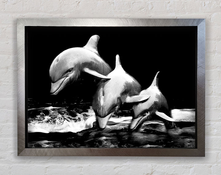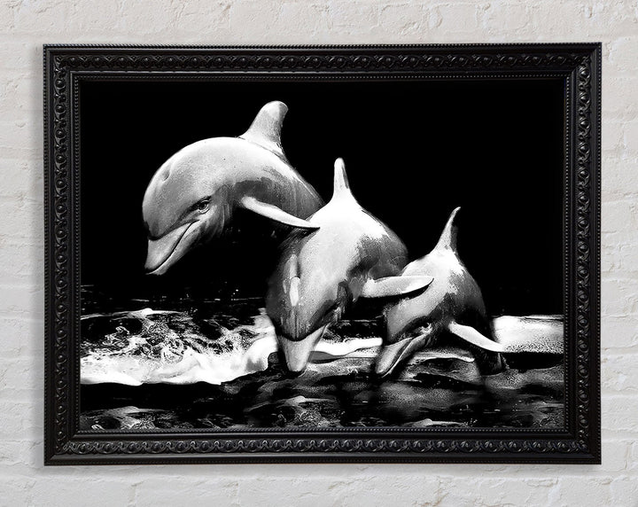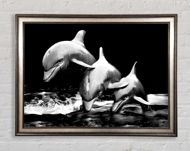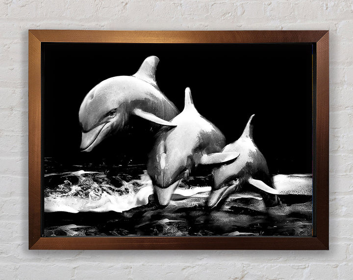 Introducing our stunning Dolphins Framed Print, a perfect addition to any space needing a touch of oceanic beauty. This exquisite piece of framed art features a pair of playful dolphins captured in a moment of pure joy. Available in six sizes, from small to oversized, it can fit perfectly in any room, whether it's a cozy corner or a grand living area.