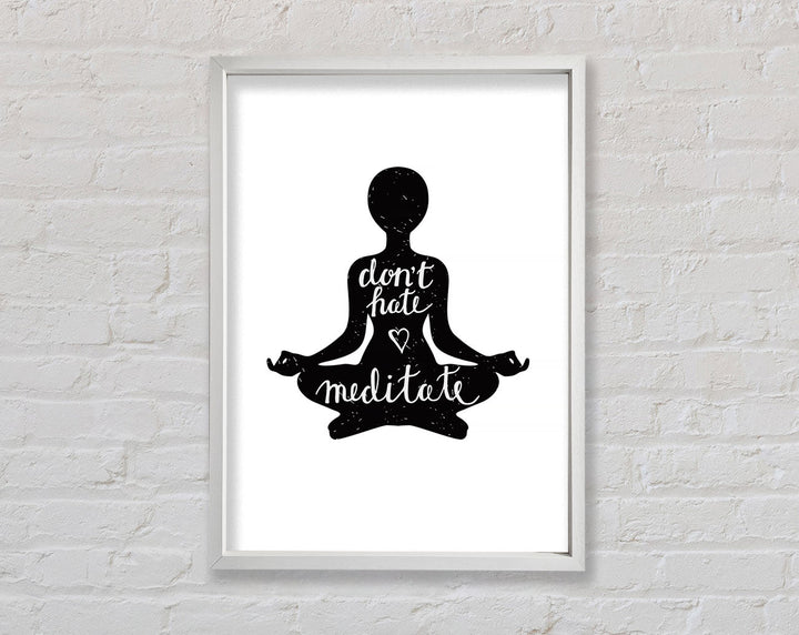 Add a touch of tranquility to your space with the "Don't Hate Meditate" Framed Print. This beautiful piece of framed art is designed to inspire peace and mindfulness in your daily life. Available in six different sizes, ranging from small to oversized, it fits perfectly in any room. Choose from a variety of colors to match your decor. Each print is handmade in the United Kingdom, ensuring high-quality craftsmanship. Ready to hang, this framed print makes it easy to transform your home or office into a serene sanctuary. Embrace calm and positivity with this unique and thoughtful wall art.