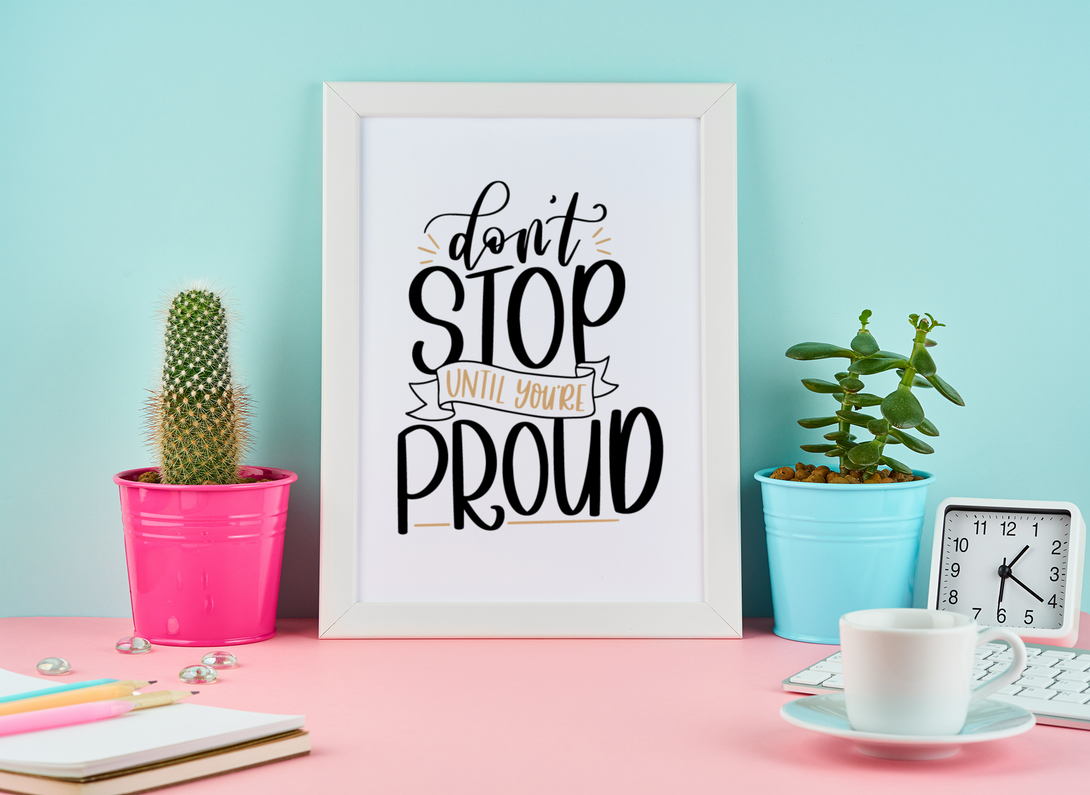 Dont Stop Until You're Proud Motivational Inspiration Wall Decor Quote Print