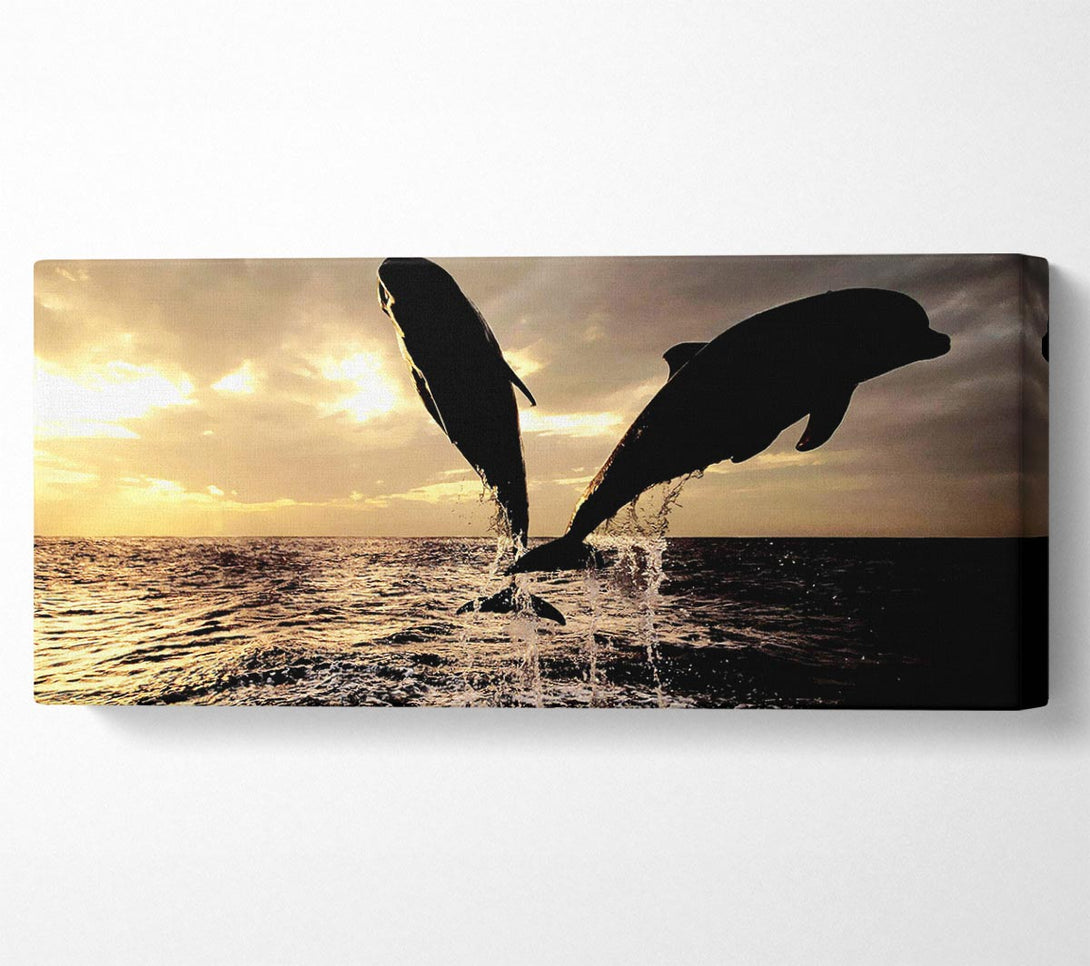 Picture of Double Dolphin Jump Panoramic Canvas Wall Art