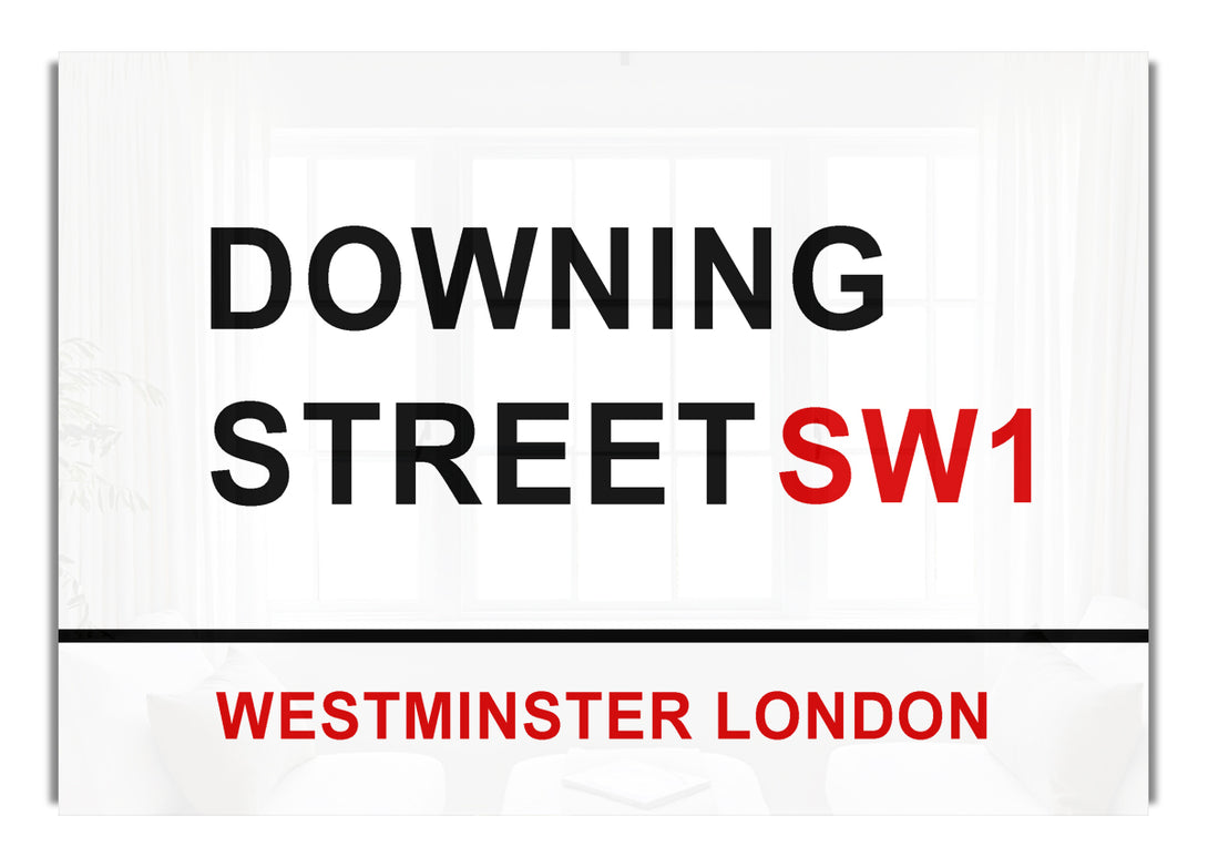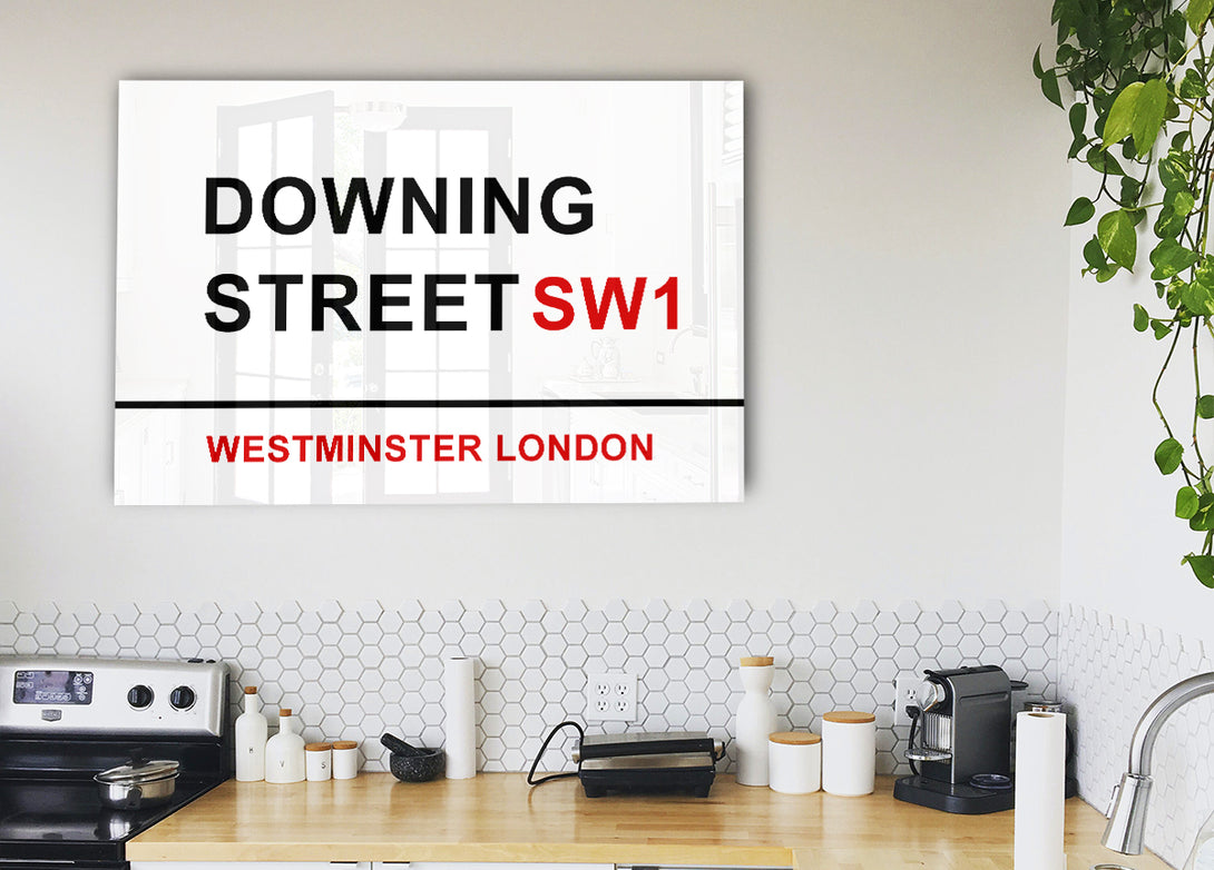 Downing Street Signs acrylic print, UV printed onto 5mm thick acrylic glass. Comes with everything you need to hang on your wall.