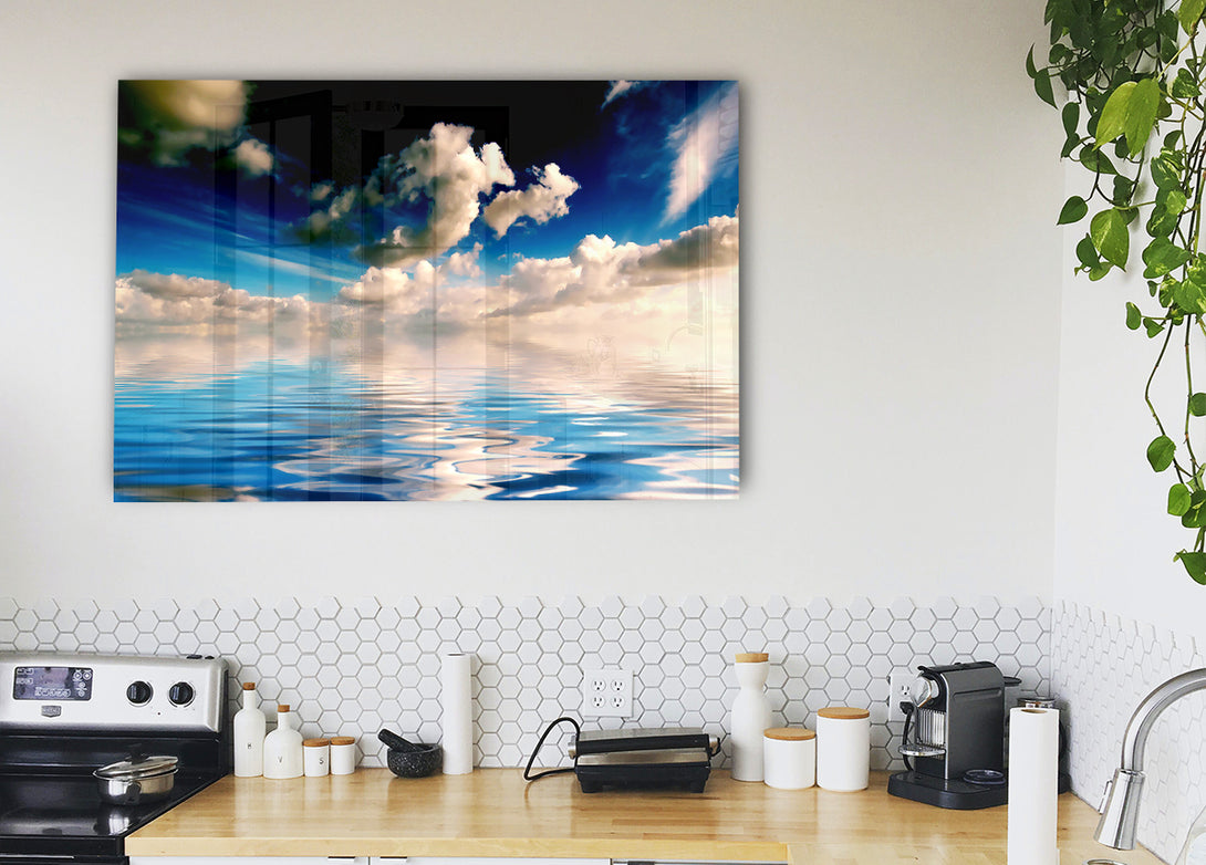 Dramatic Ocean Clouds Blue acrylic print, UV printed onto 5mm thick acrylic glass. Comes with everything you need to hang on your wall.