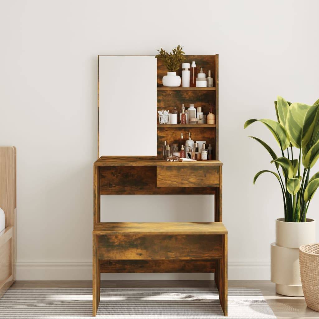 Dressing Table with Mirror Smoked Oak 74.5x40x141 cm