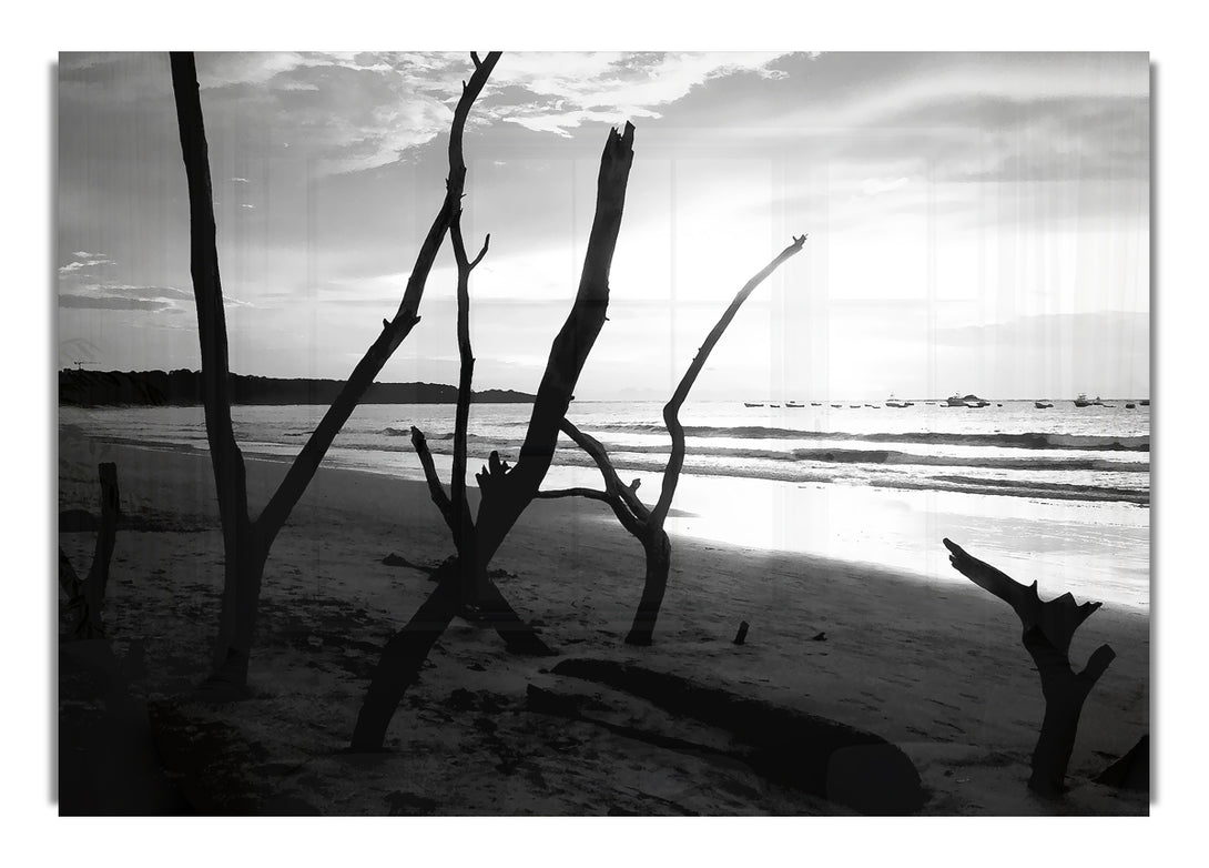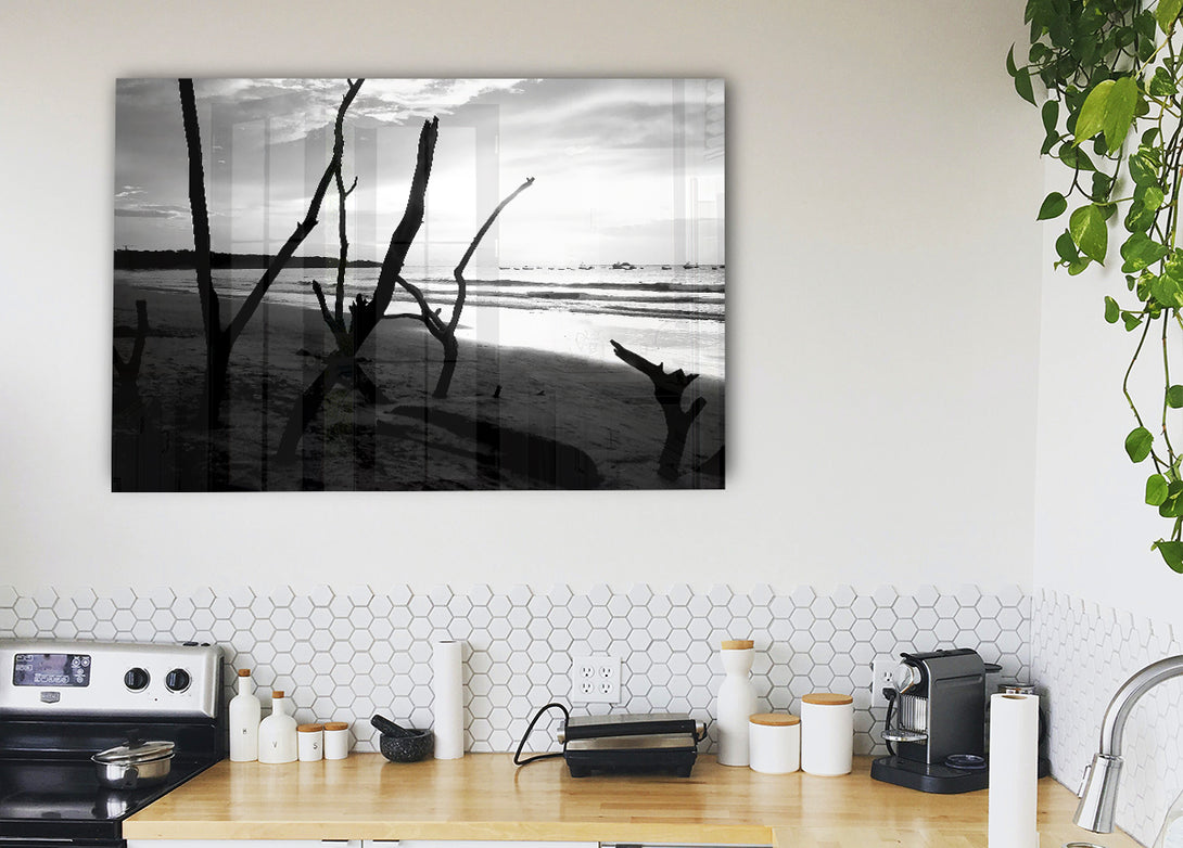 Driftwood Beach B~w acrylic print, UV printed onto 5mm thick acrylic glass. Comes with everything you need to hang on your wall.