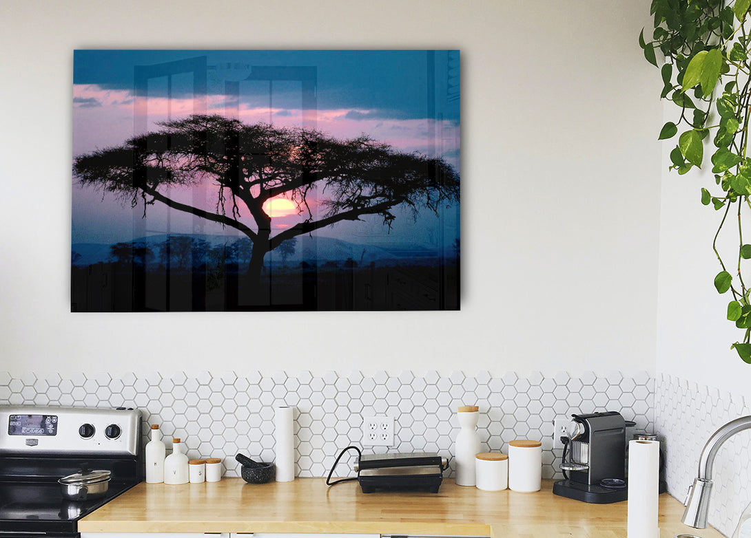 East African Sunset acrylic print, UV printed onto 5mm thick acrylic glass. Comes with everything you need to hang on your wall.