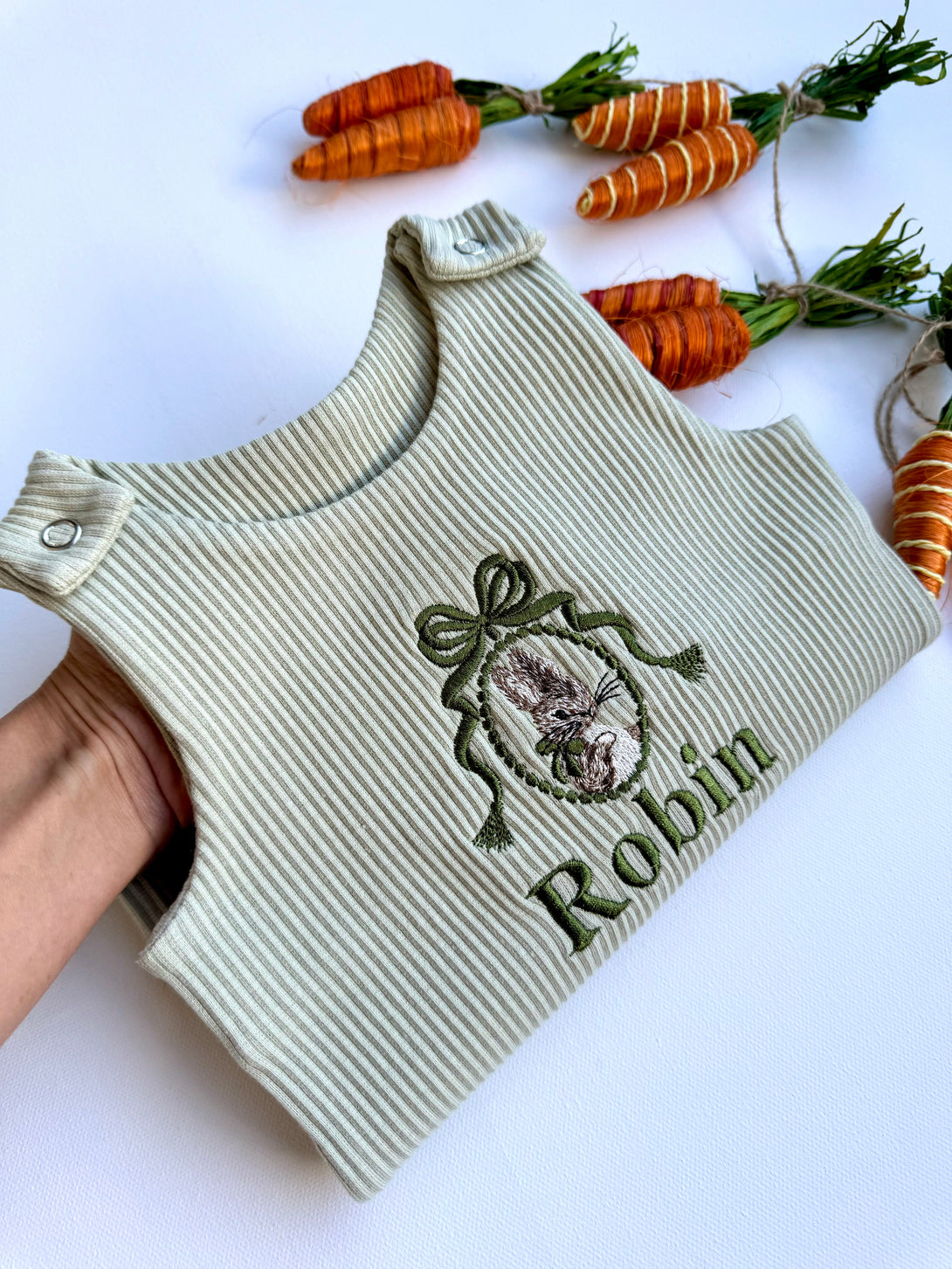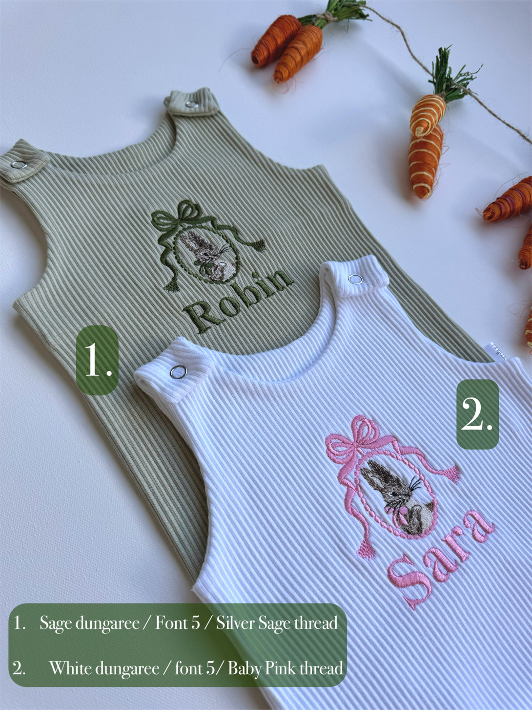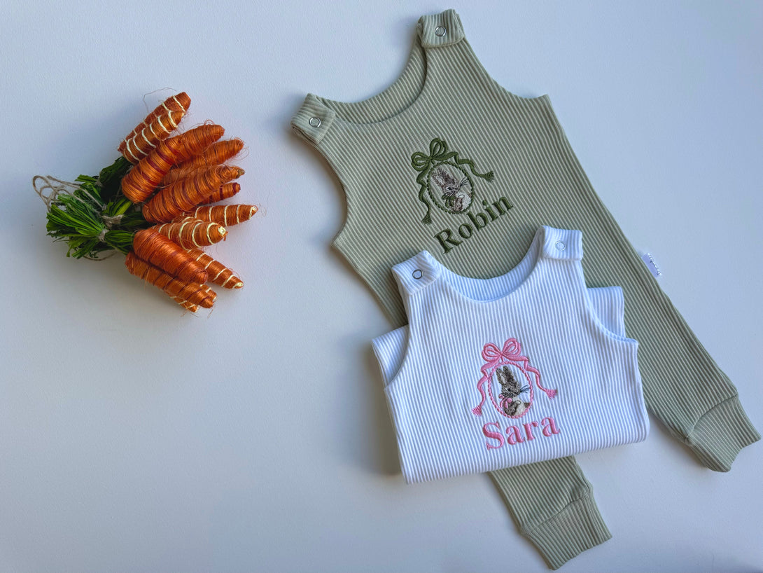 🌿 Personalised Easter Baby Dungarees | Embroidered Bunny Romper | Custom Baby Gift 🌿