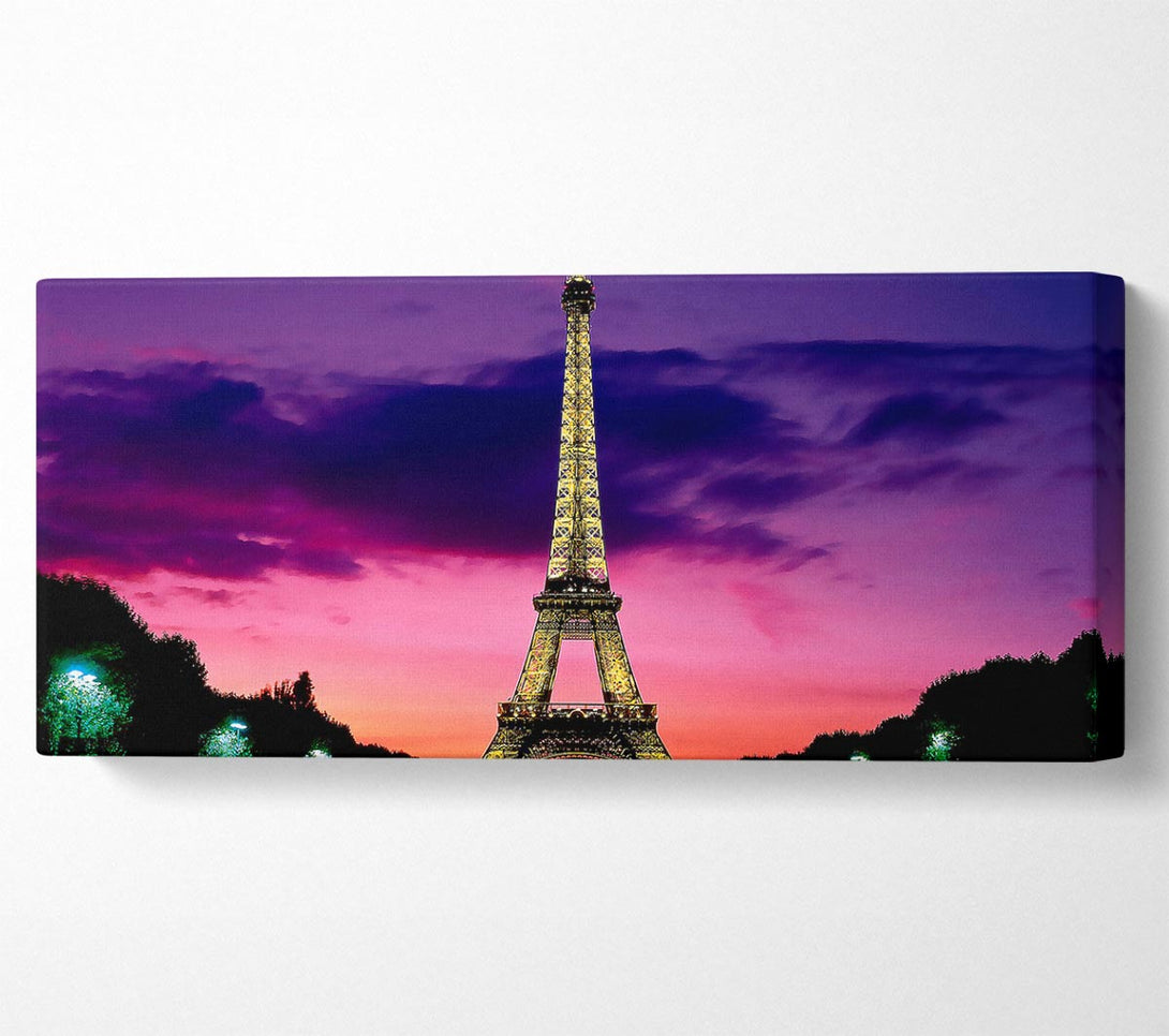 Picture of Eiffel Tower At Night Paris France Panoramic Canvas Wall Art