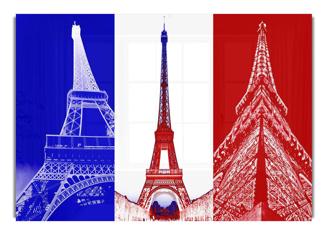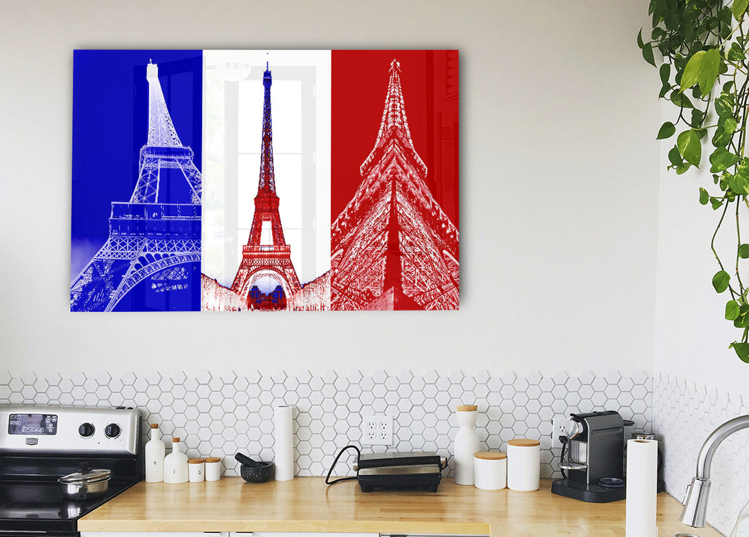 Eiffel Tower French Colours acrylic print, UV printed onto 5mm thick acrylic glass. Comes with everything you need to hang on your wall.