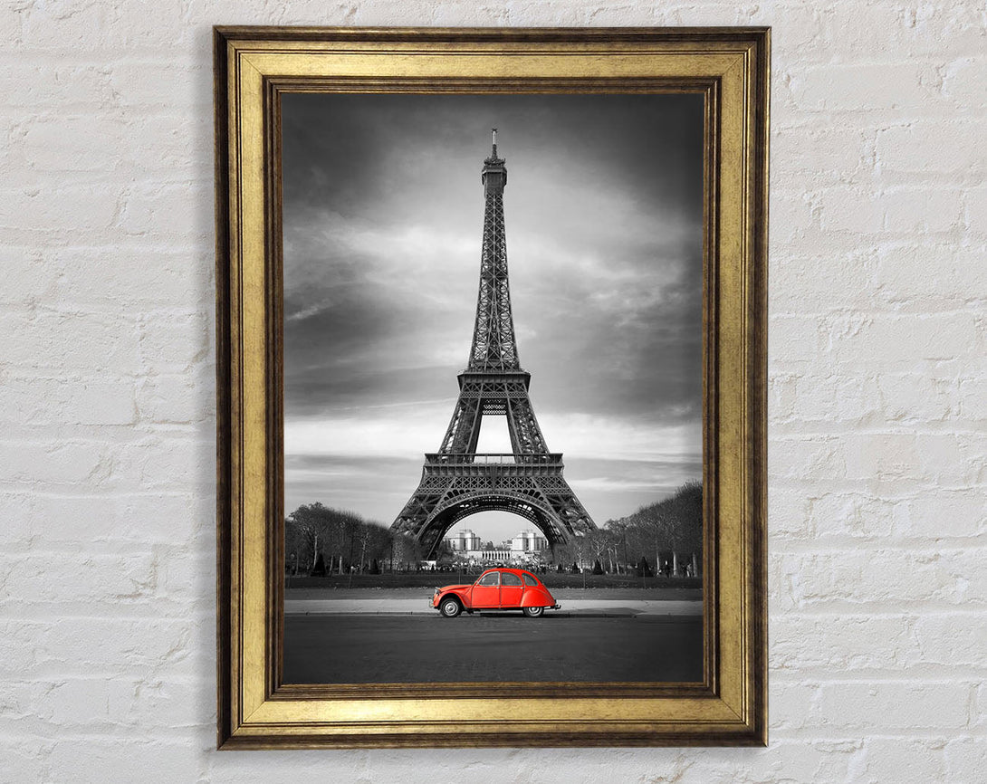 Eiffel Tower Red Car Framed Print