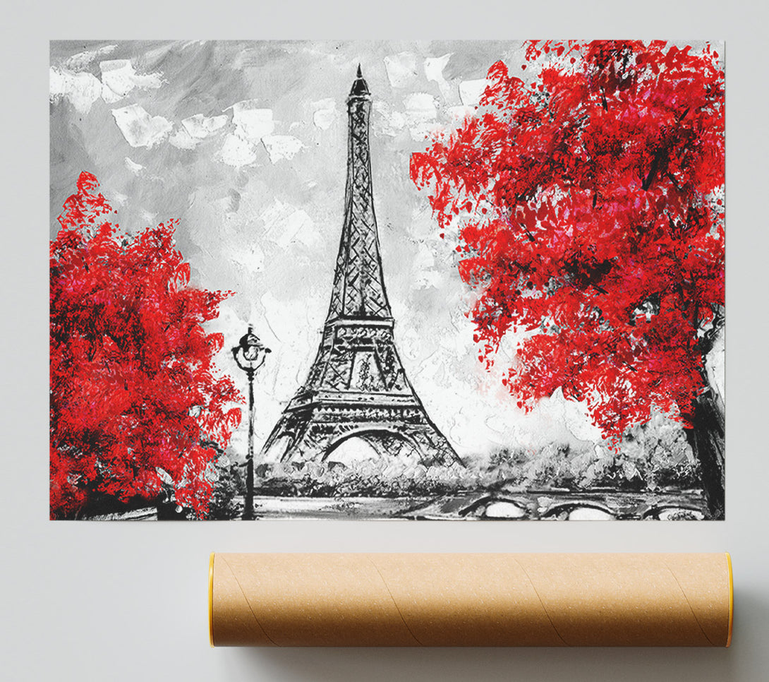 Our Eiffel Tower Red trees Poster is printed 260 GSM premium lustre paper that offers vibrant colours and exceptional detail.
