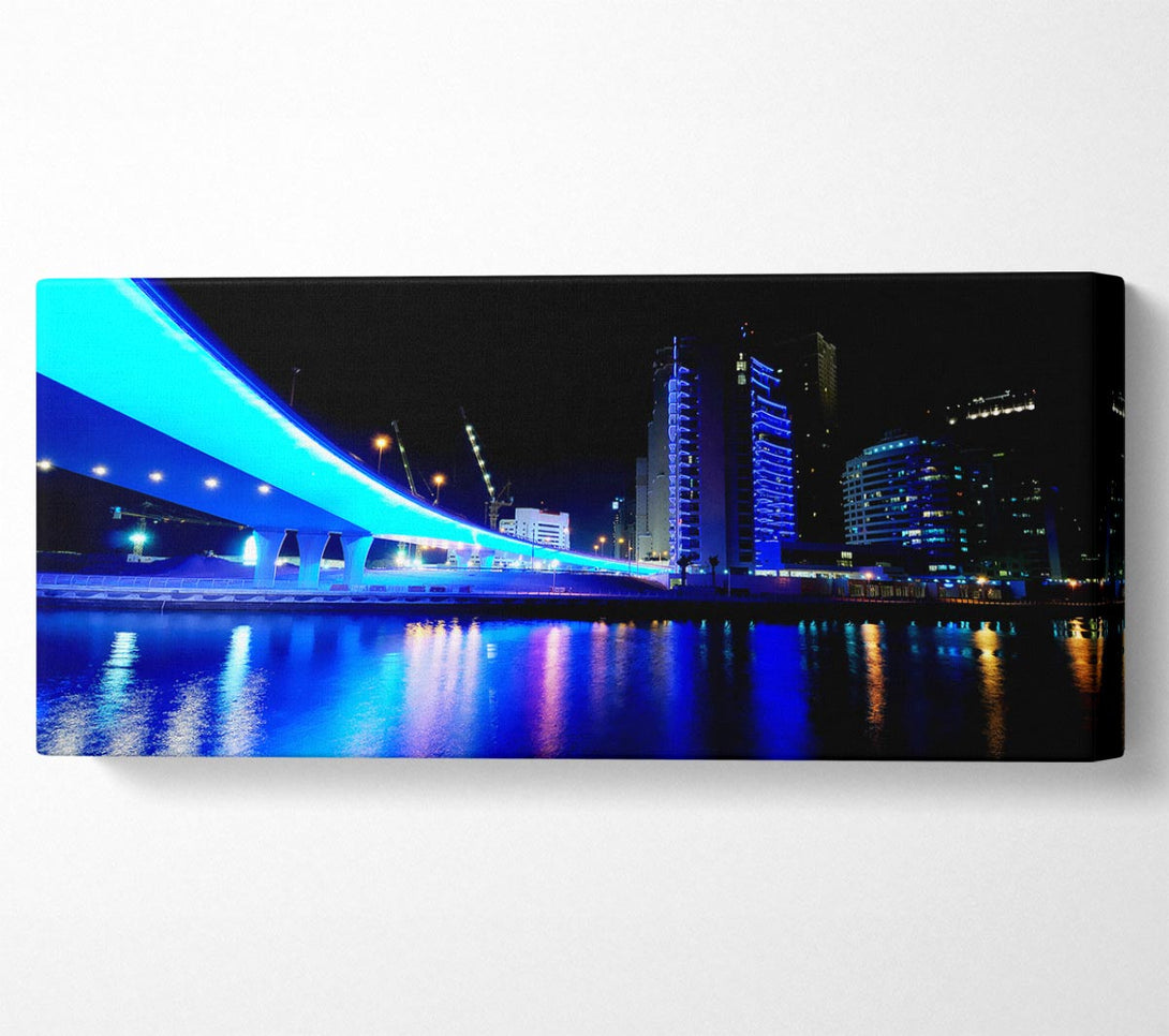 Electric Blue Bridge canvas, printed on coated polyester canvas. Mounted on to a 44mm box frame, ready to hang.