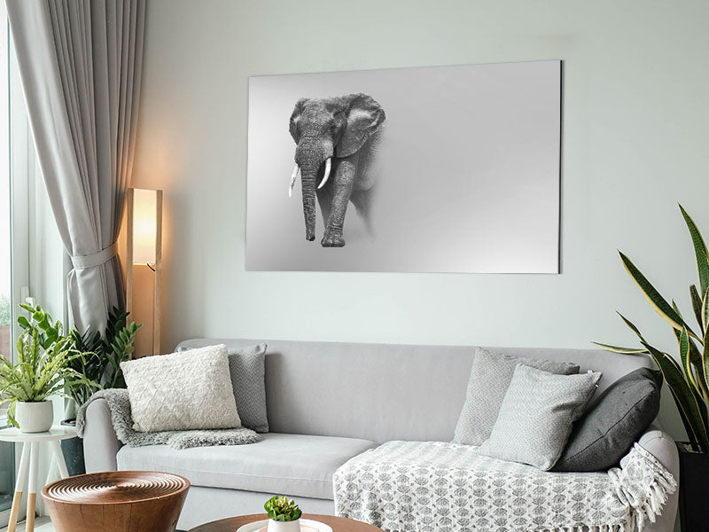 Elephant In The Mist Printed on brushed aluminium dibond. A modern way to display art and easy to maintain.