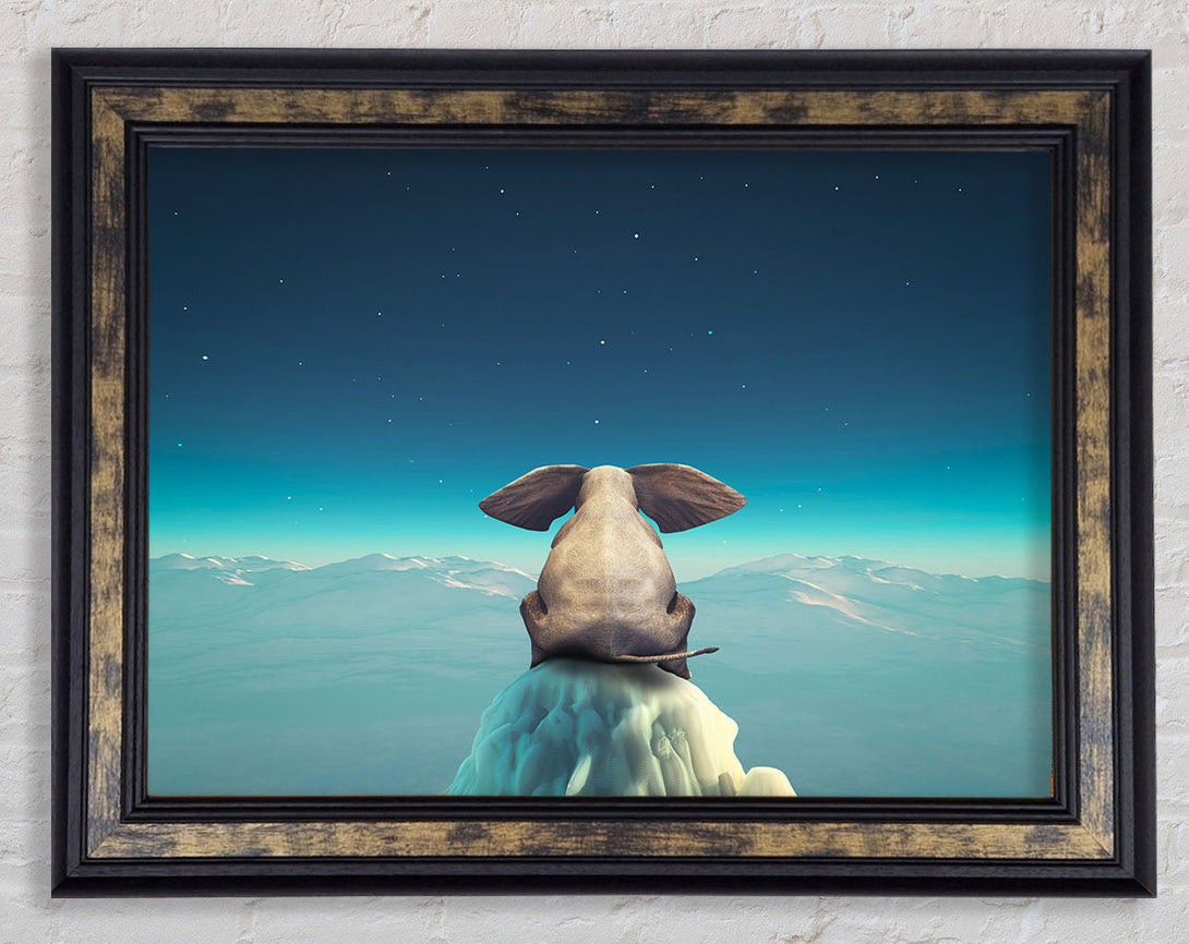 Elephant On A Cliff Framed Print