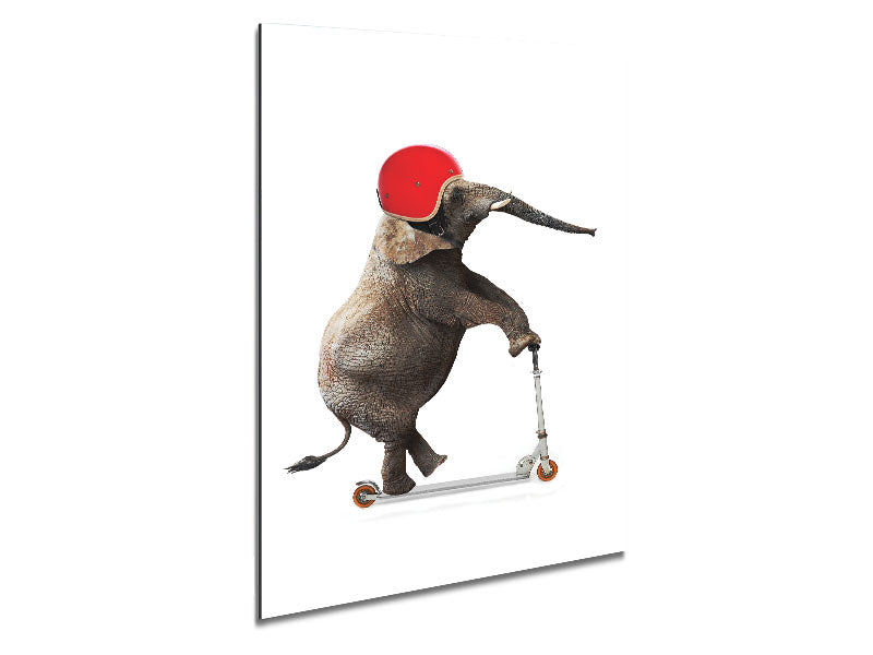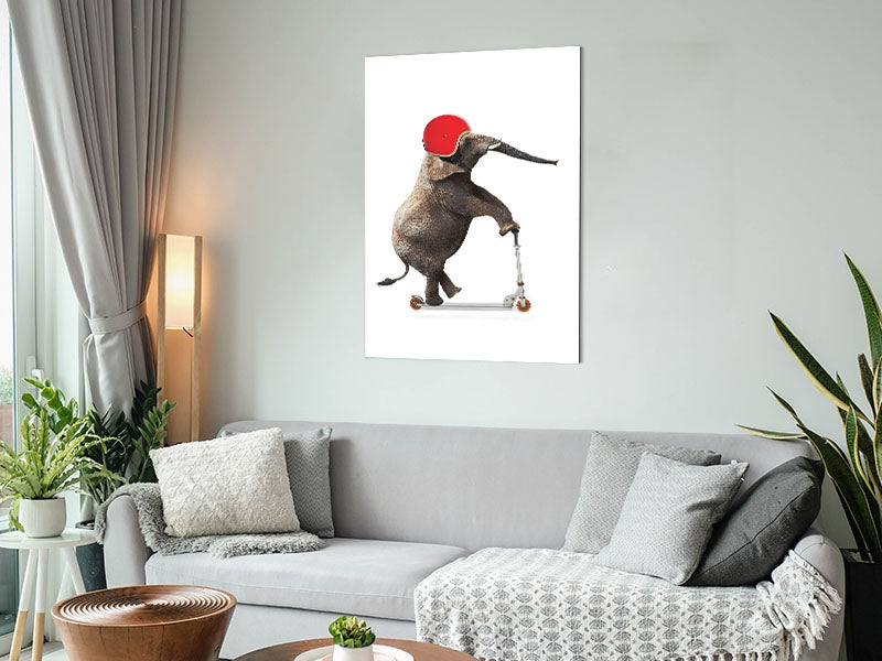 Elephant Scooter Printed on brushed aluminium dibond. A modern way to display art and easy to maintain.