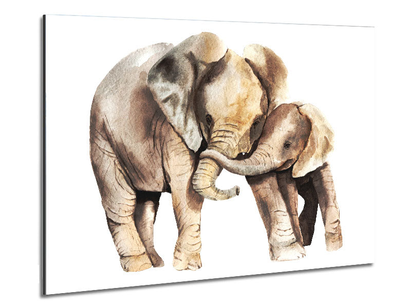 Elephants Holding Trunks Printed on brushed aluminium dibond. A modern way to display art and easy to maintain.