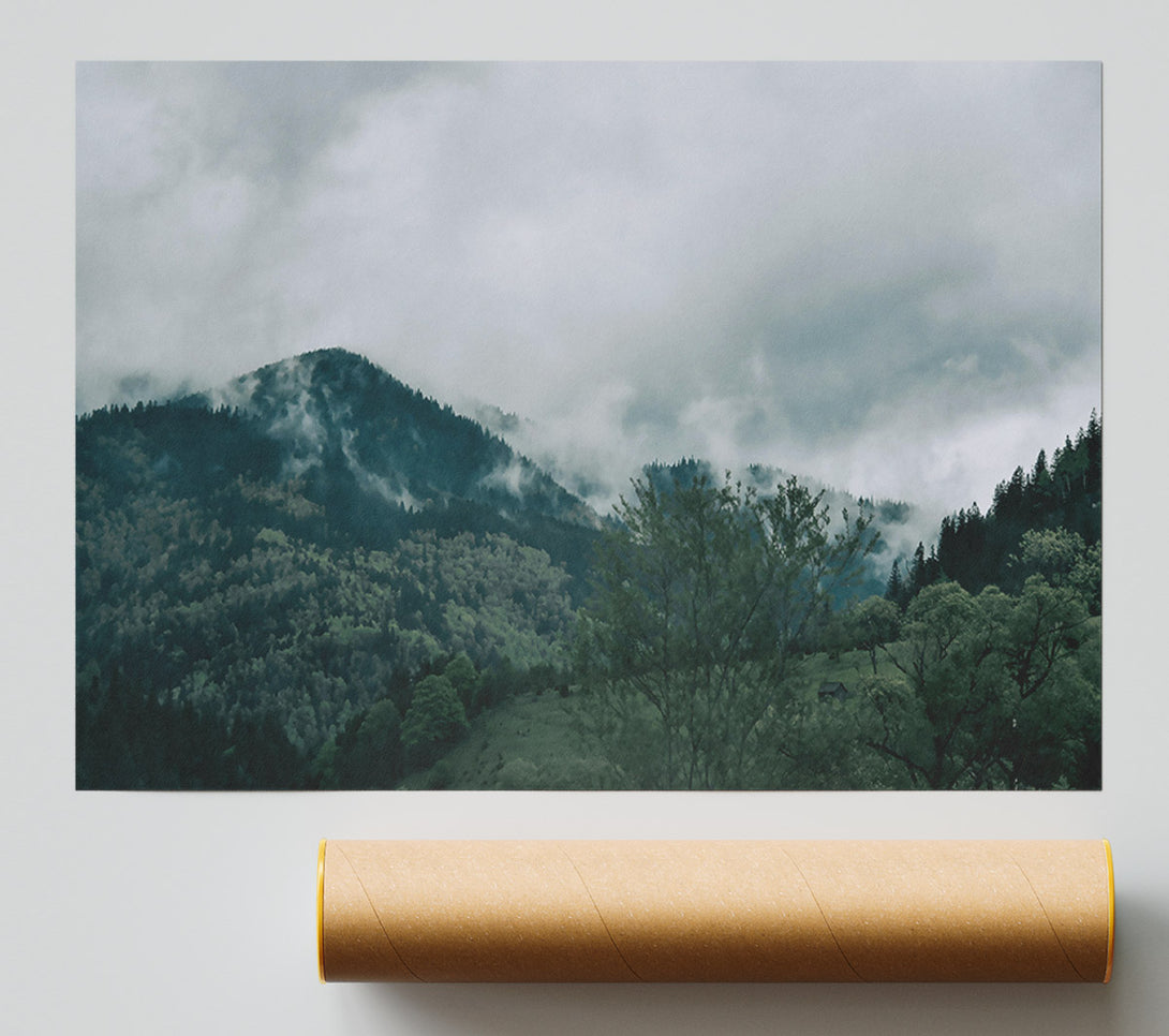 Our Emerald Mist Mountains. Poster is printed 260 GSM premium lustre paper that offers vibrant colours and exceptional detail.