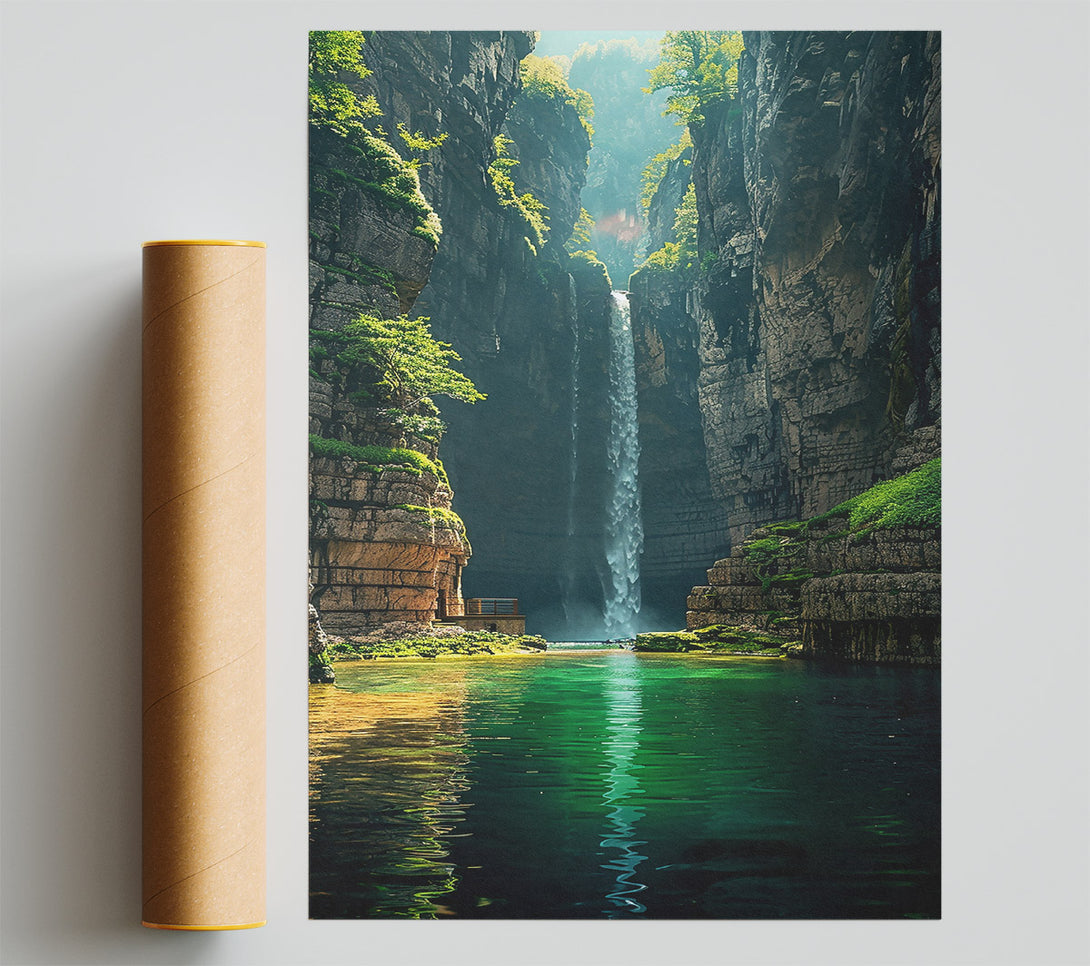 Our Emerald Waterfall Canyon Poster is printed 260 GSM premium lustre paper that offers vibrant colours and exceptional detail.