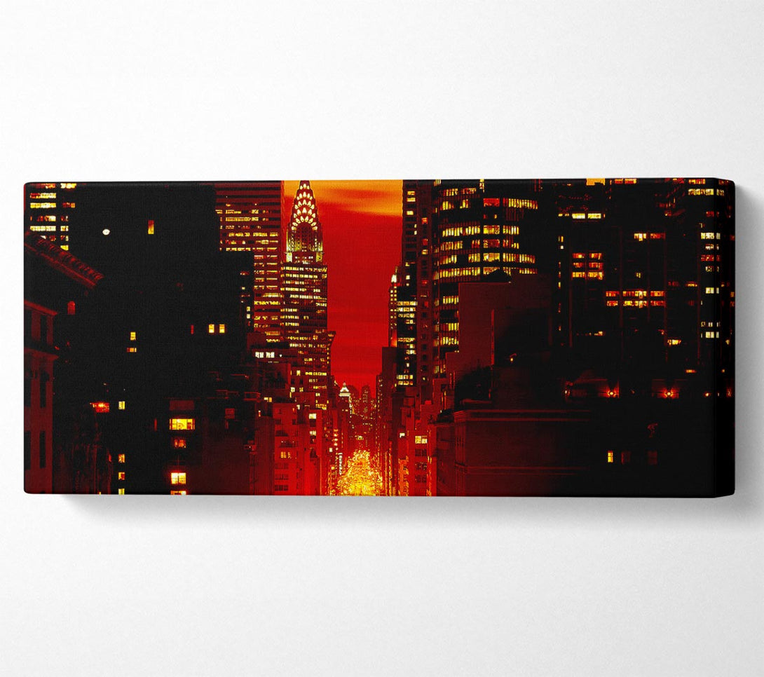 Picture of Empire State Building Fire Red Panoramic Canvas Wall Art