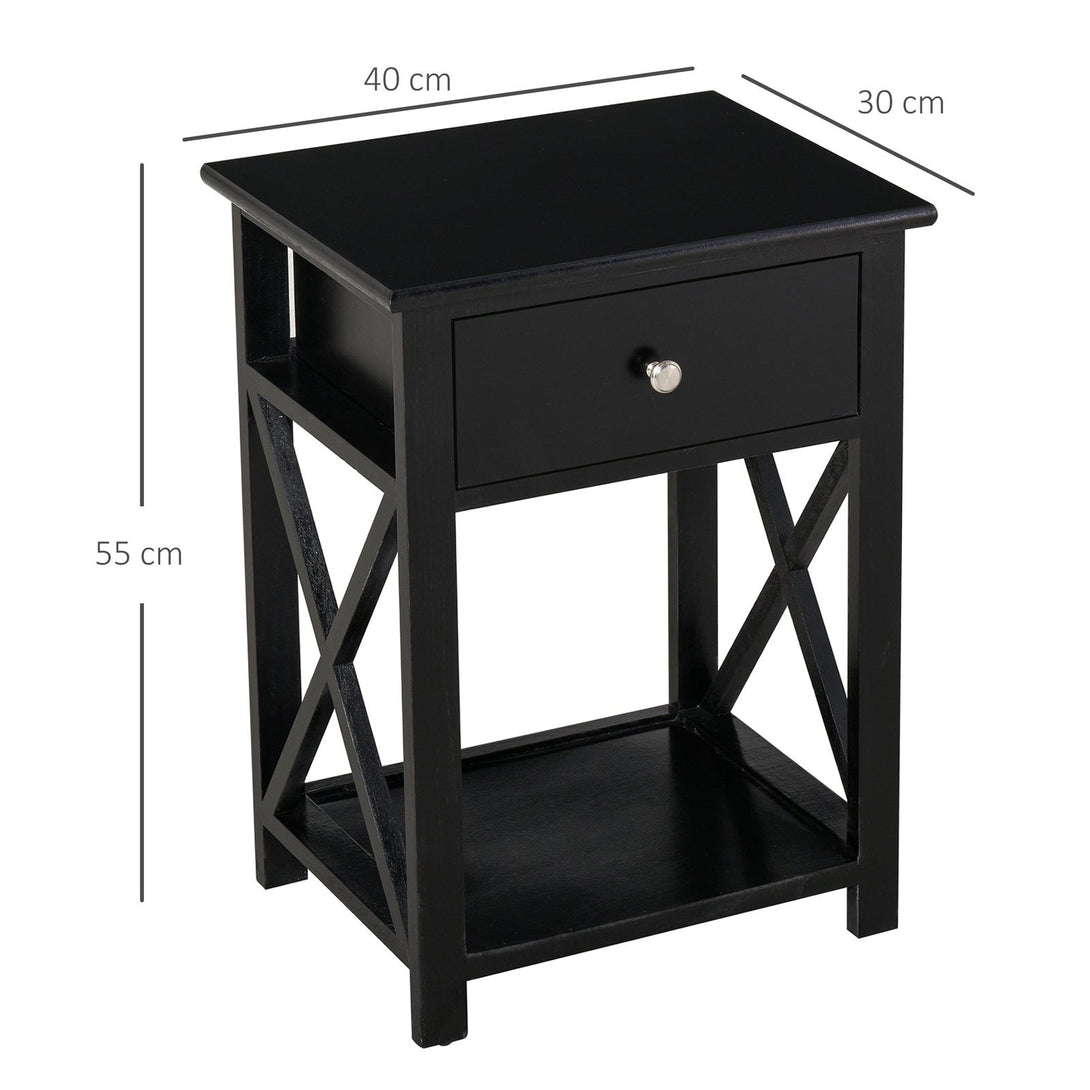 Bring simple beauty into your home with this side table from HOMCOM. Made from MDF for a sturdy structure, it is crafted into a simple, yet beautiful design, making it a welcome addition to any room. It features an open bottom shelf and a top drawer, giving you lots of storage space to keep the area neat and tidy. The frame is given extra strength with the side cross bars, helping to keep the shape unified. The perfect piece to enhance your home and beyond.