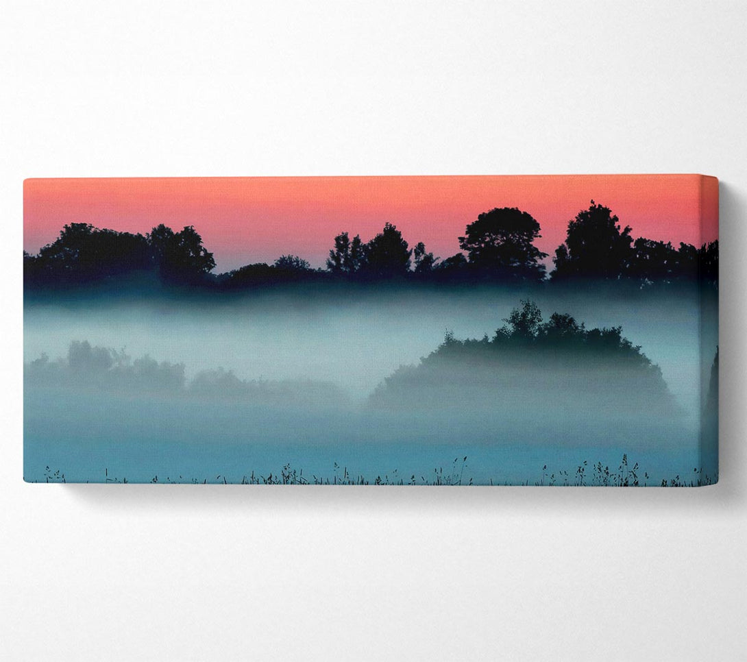 English Countryside Mist canvas, printed on coated polyester canvas. Mounted on to a 44mm box frame, ready to hang.
