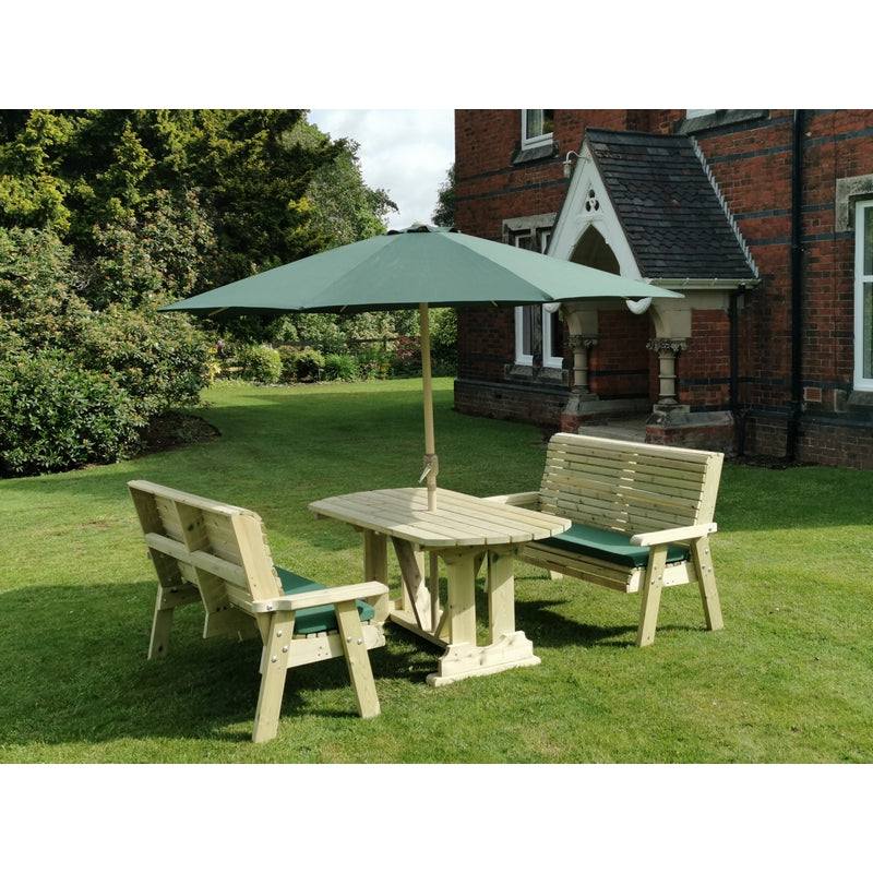 Built by British craftsmen in a unique style using the finest Swedish Redwood, the sturdy Croft Ergo 4-Seater Bench Dining Set is a truly stunning garden arrangement consisting of a stylish table and 2 ergonomically designed benches. This beautiful set complements all the garden pieces and sets in the same or similar ranges.Made with responsibly-sourced timber and pressure treated for greater durability. Constructed with rust-resistant galvanised zinc bolts. A product proudly made in Great Britain. Pallet delivery.