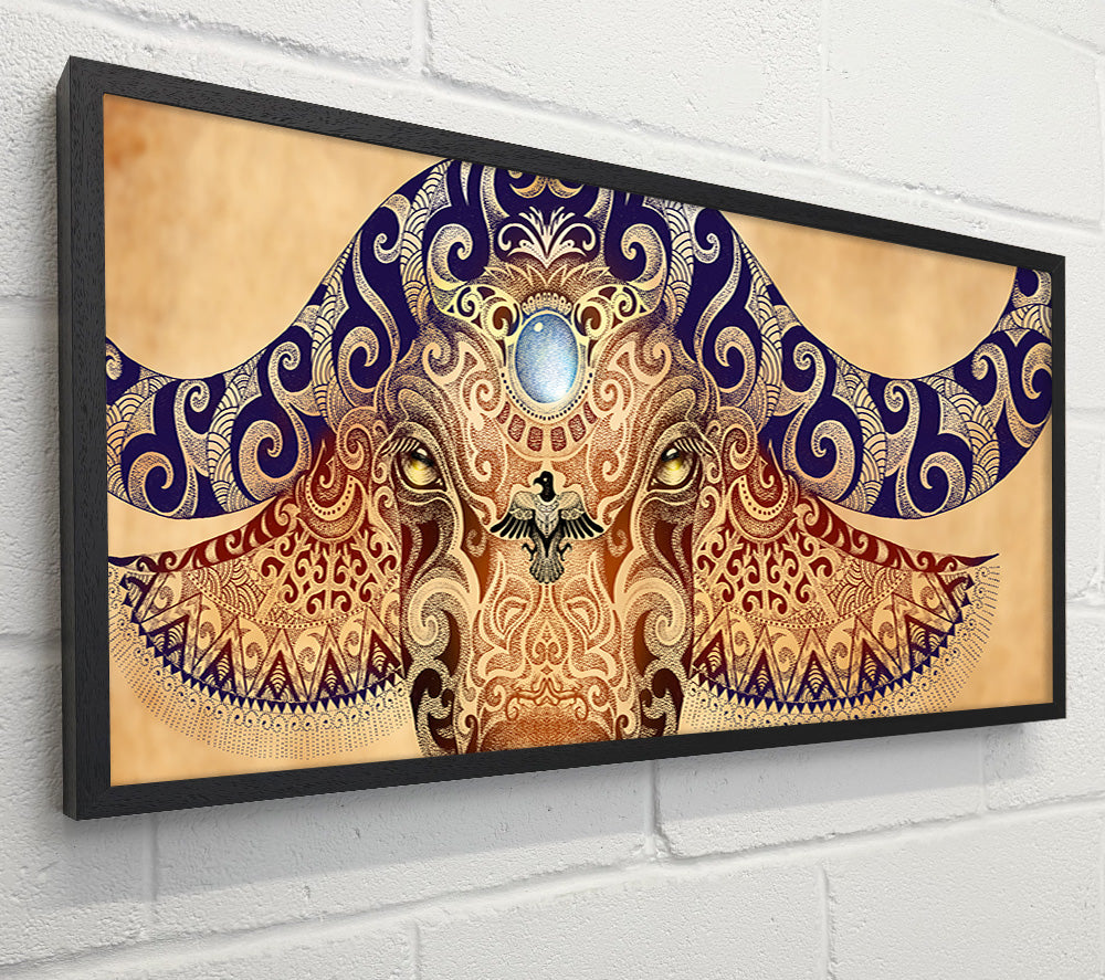 Add a touch of cultural charm to your space with the Ethnic Ox Head Canvas Print. This striking artwork features a detailed ox head design inspired by traditional ethnic patterns, perfect for creating a focal point on your wall. Made with high-quality canvas and vibrant, fade-resistant inks, this print ensures long-lasting beauty. Available in five sizes, from small to oversized, you can find the perfect fit for any room. The Ethnic Ox Head Canvas Print is easy to hang and makes a bold statement in living rooms, bedrooms, or offices. Elevate your decor and celebrate cultural artistry with this captivating wall art piece.
