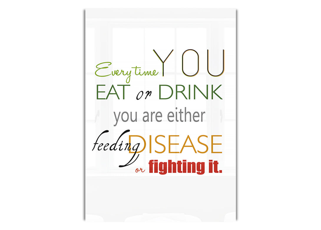 Every Time You Eat Or Drink acrylic print, UV printed onto 5mm thick acrylic glass. Comes with everything you need to hang on your wall.