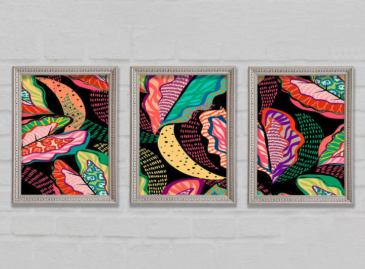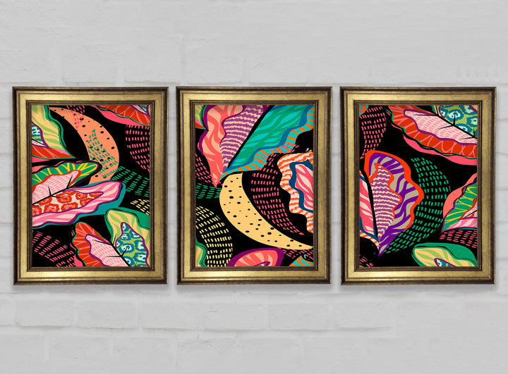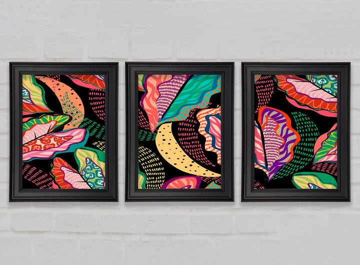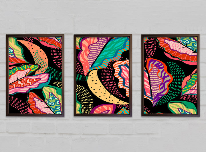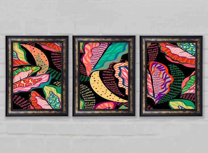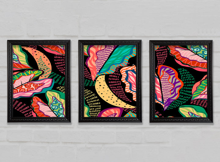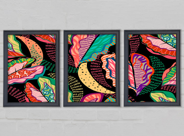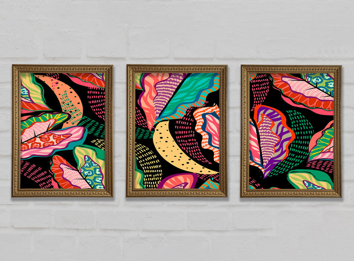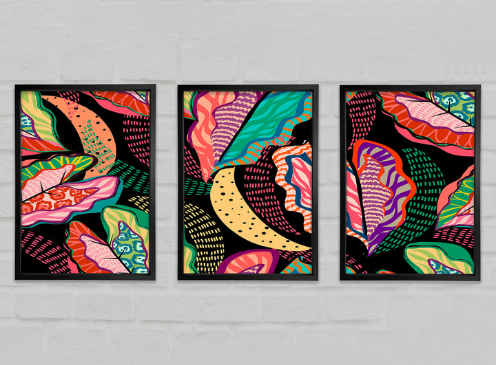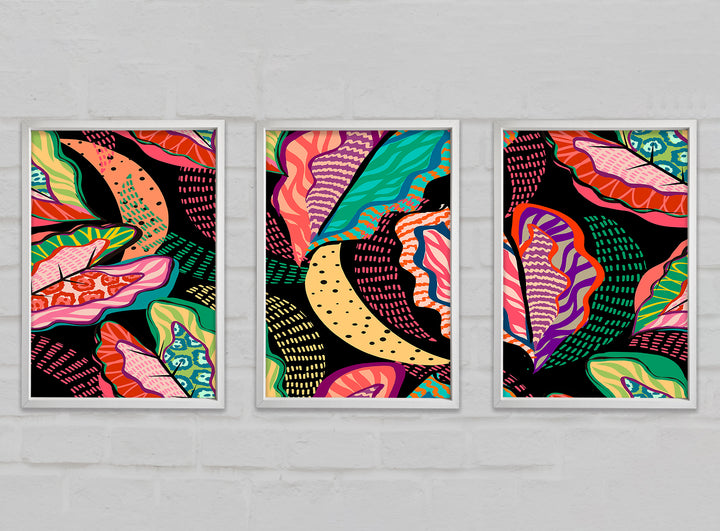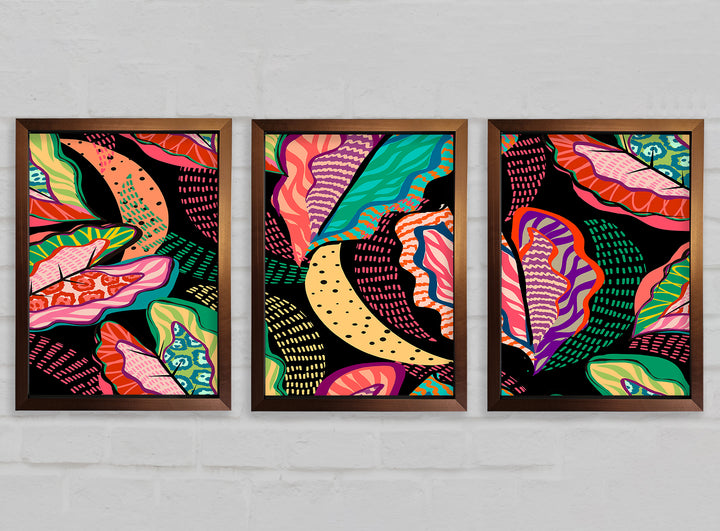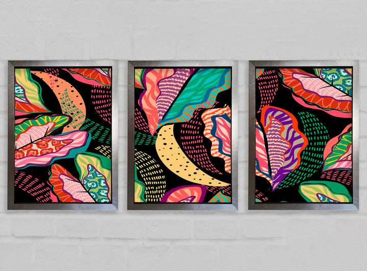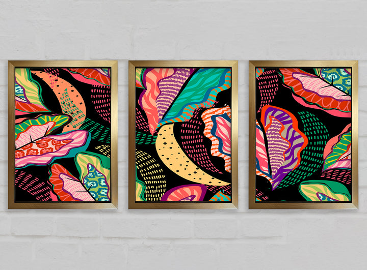 Exotic Leaf Abstract set of 3 framed print wall art, available in mutiple frame colours. Ready to hang from the box and handmade in the United Kingdom.