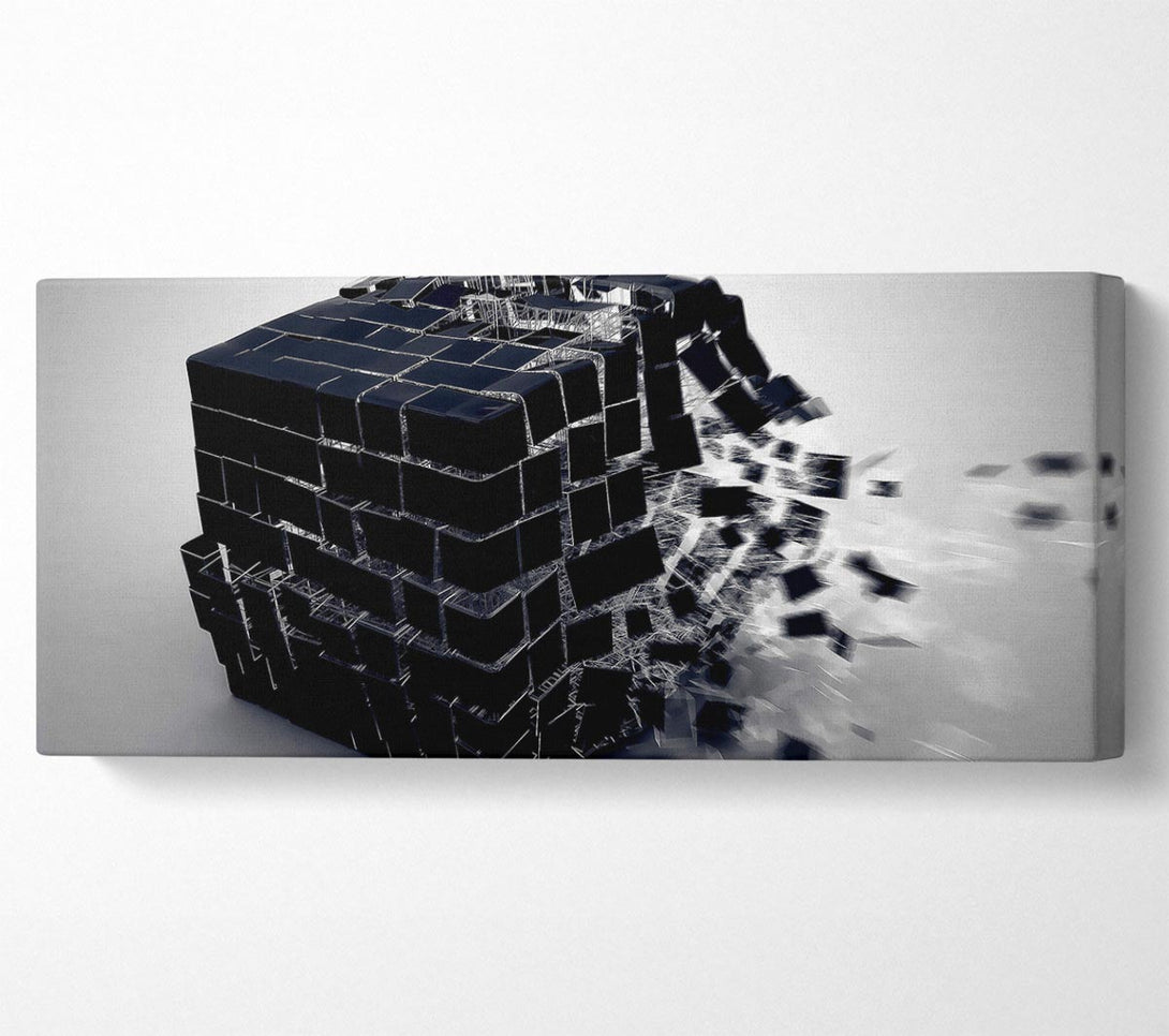 Exploding Cube canvas, printed on coated polyester canvas. Mounted on to a 44mm box frame, ready to hang.