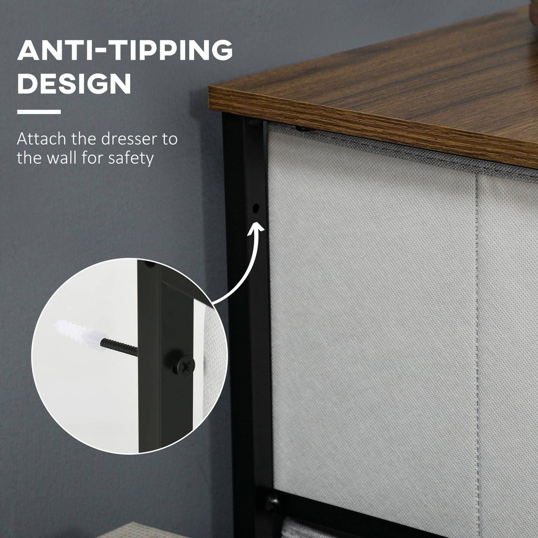 Home storage with this HOMCOM fabric chest of drawers. The eight fabric drawers offer room for lots of things - keep t-shirts, tops, bottoms and more organised. The large space also makes it suitable for shared use. The wood-effect top offers more room: a great place to display your favourite photos. The steel frame makes a strong core, with adjustable feet for balance. Comes with anti-tipping straps for safety. Use all over the home and office.