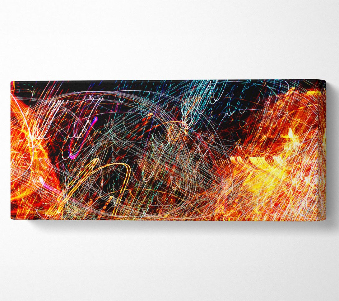 Fairground Lights Intense canvas, printed on coated polyester canvas. Mounted on to a 44mm box frame, ready to hang.