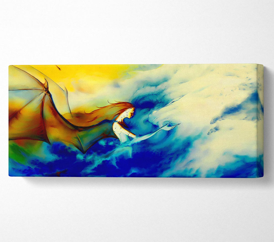 Fairy Dragon Clouds canvas, printed on coated polyester canvas. Mounted on to a 44mm box frame, ready to hang.