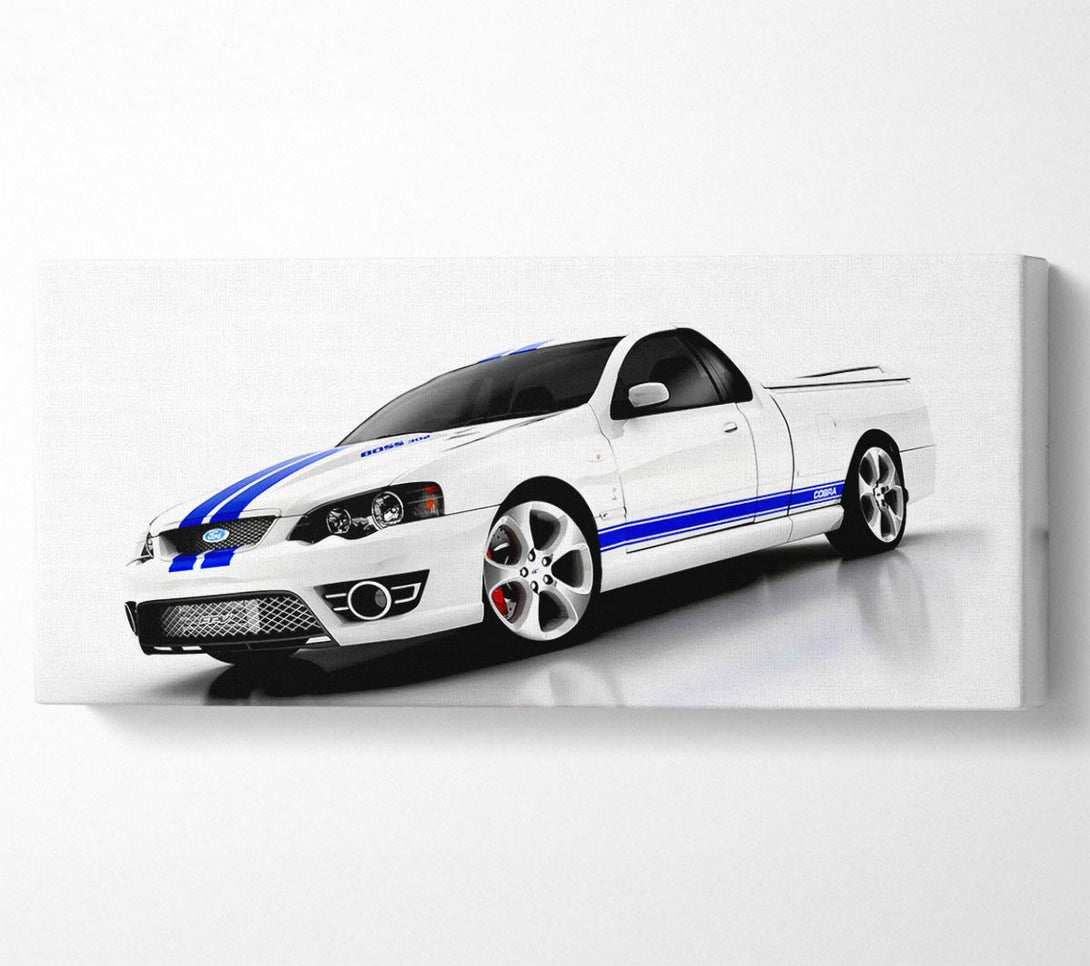 Falcon Cobra Ute canvas, printed on coated polyester canvas. Mounted on to a 44mm box frame, ready to hang.