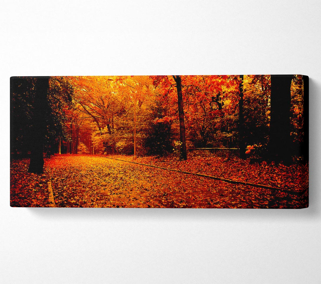 Fall In The Orange Forest canvas, printed on coated polyester canvas. Mounted on to a 44mm box frame, ready to hang.