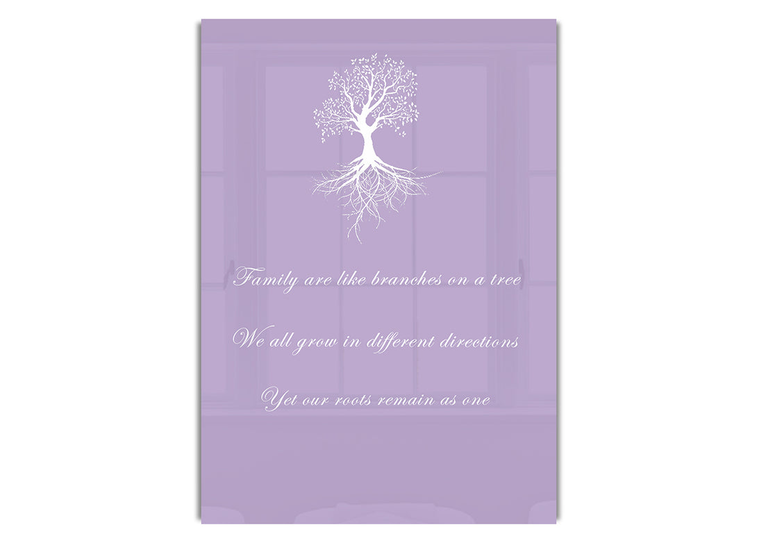Family Are Like Branches 2 Lilac acrylic print, UV printed onto 5mm thick acrylic glass. Comes with everything you need to hang on your wall.