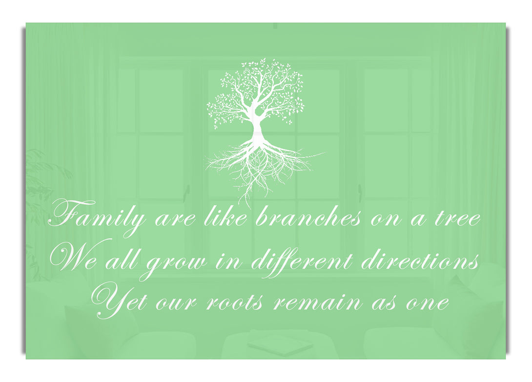 Family Are Like Branches Green acrylic print, UV printed onto 5mm thick acrylic glass. Comes with everything you need to hang on your wall.