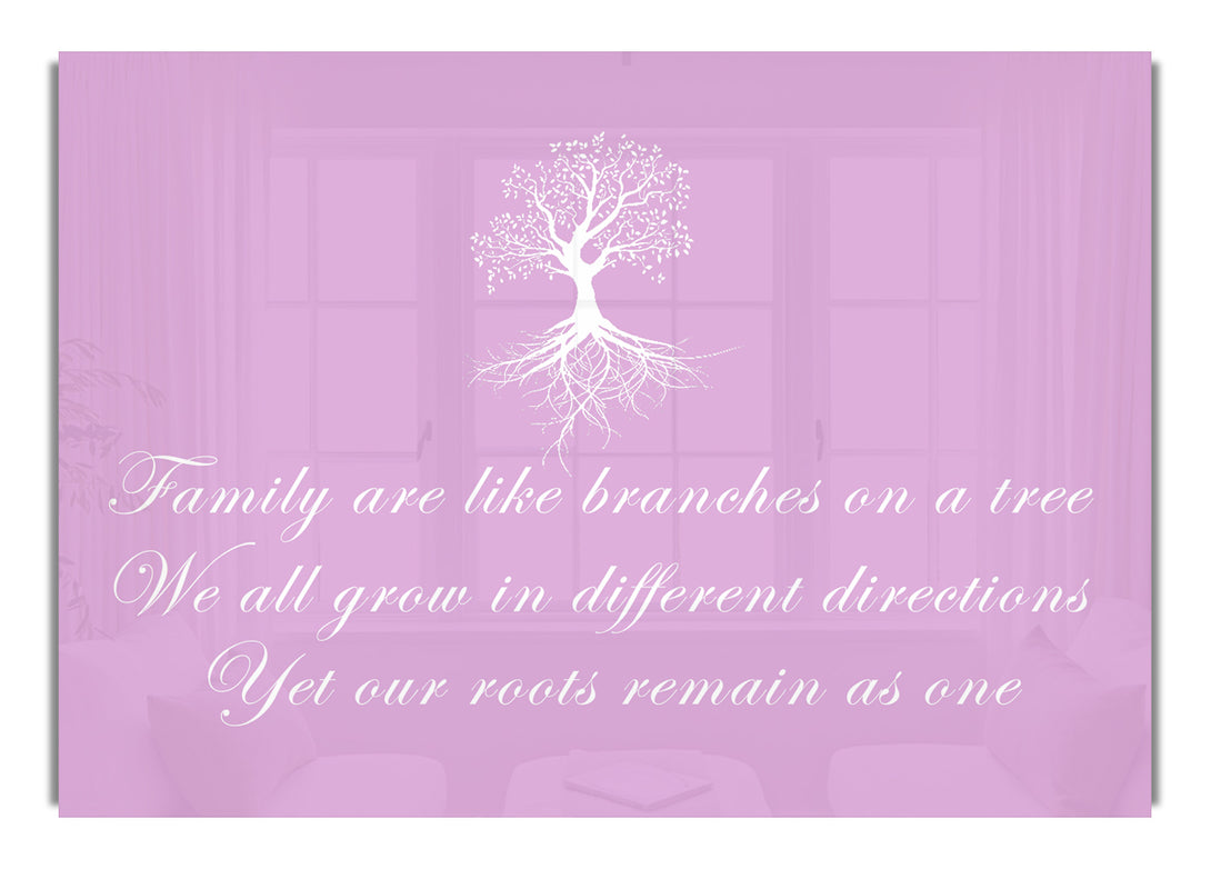 Family Are Like Branches Pink acrylic print, UV printed onto 5mm thick acrylic glass. Comes with everything you need to hang on your wall.