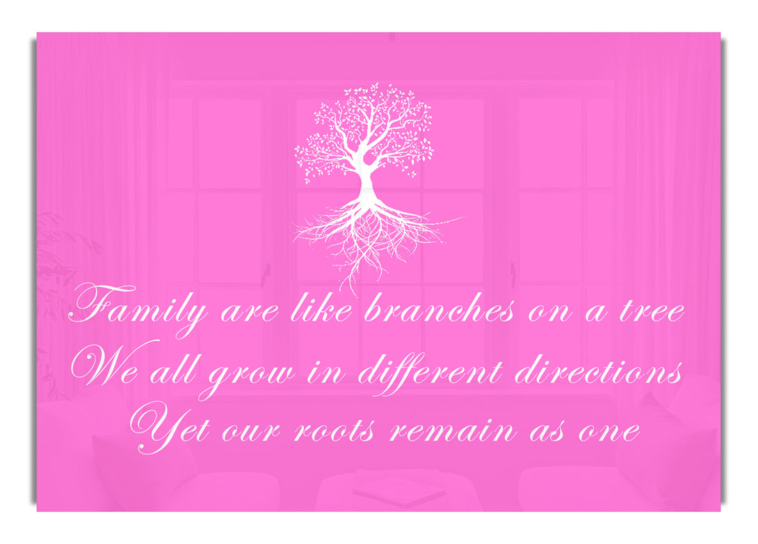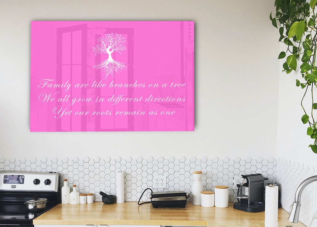 Family Are Like Branches Vivid Pink acrylic print, UV printed onto 5mm thick acrylic glass. Comes with everything you need to hang on your wall.