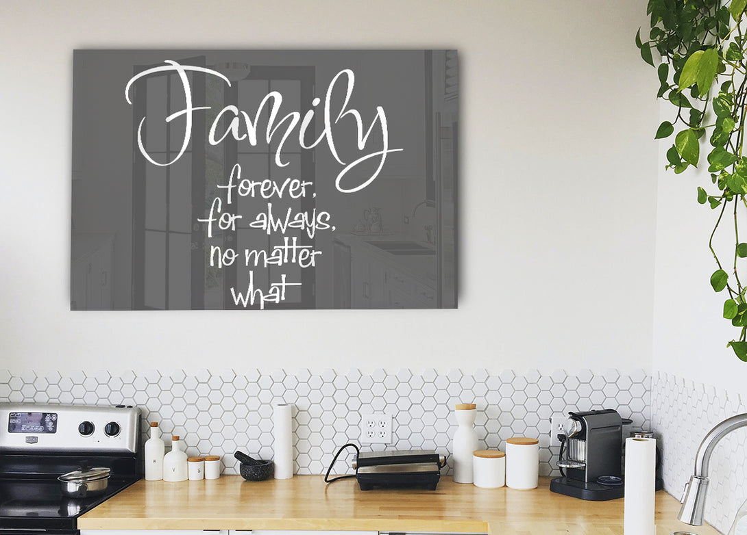 Family Forever For Always Grey acrylic print, UV printed onto 5mm thick acrylic glass. Comes with everything you need to hang on your wall.