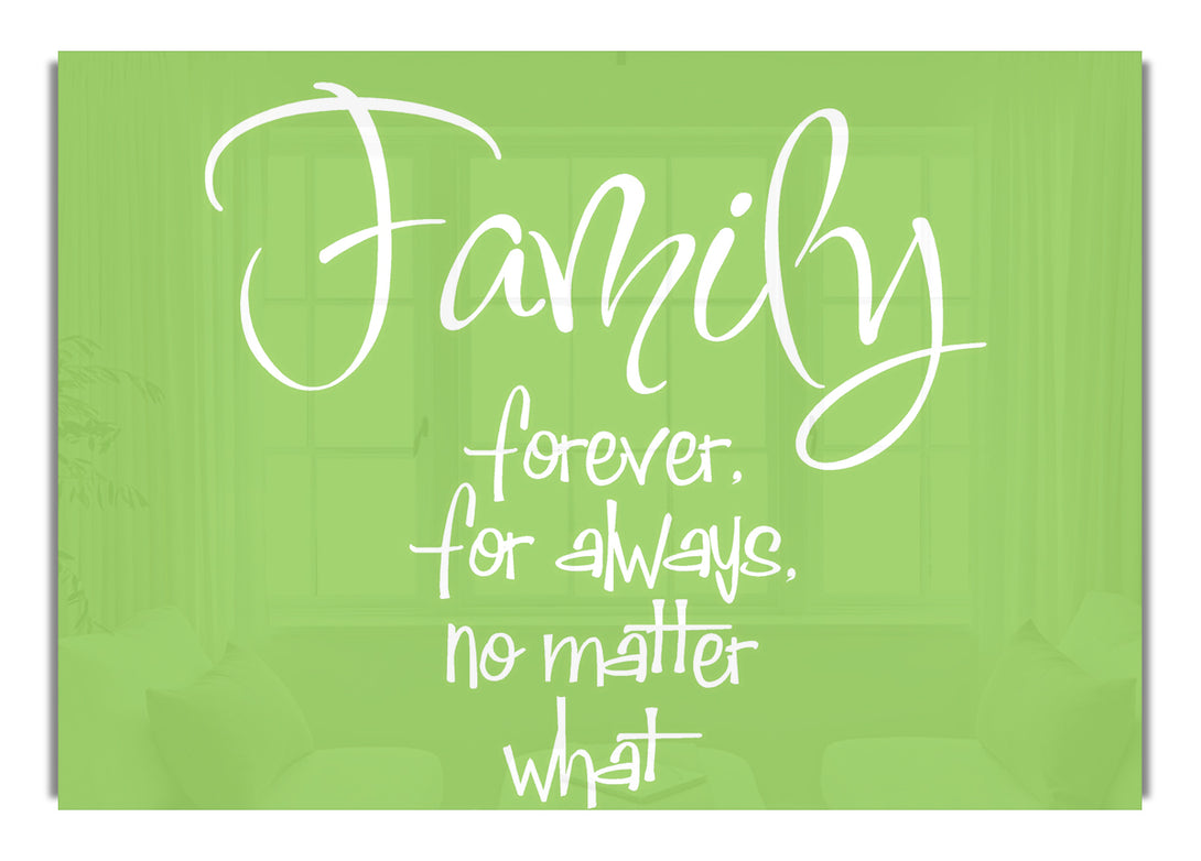 Family Forever For Always Lime Green acrylic print, UV printed onto 5mm thick acrylic glass. Comes with everything you need to hang on your wall.