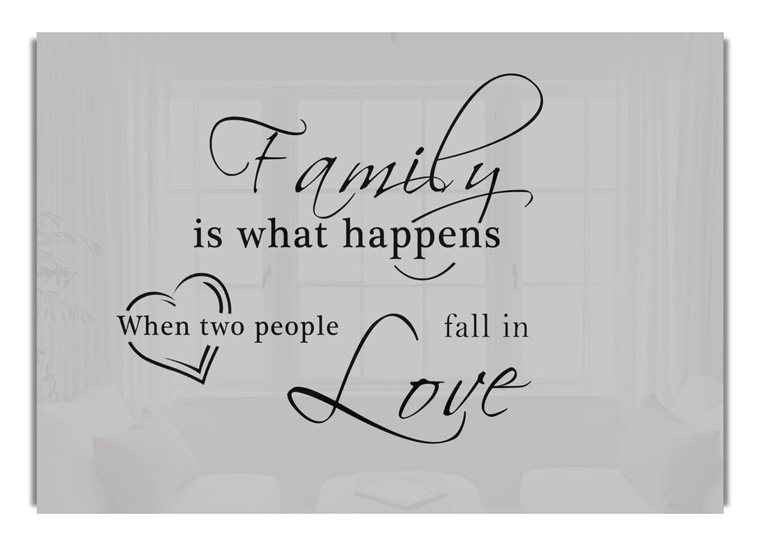 Family Is What Happens Grey acrylic print, UV printed onto 5mm thick acrylic glass. Comes with everything you need to hang on your wall.