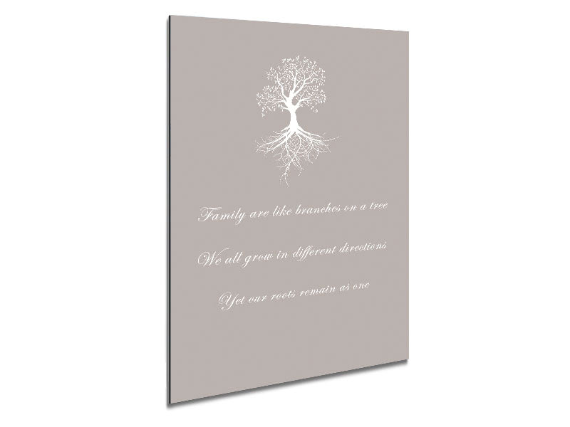 Family Quote Family Are Like Branches 2 Beige Printed on brushed aluminium dibond. A modern way to display art and easy to maintain.