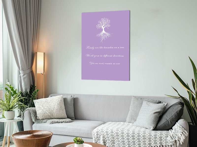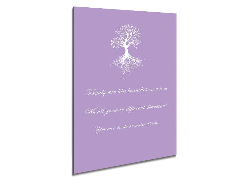 Family Quote Family Are Like Branches 2 Lilac Printed on brushed aluminium dibond. A modern way to display art and easy to maintain.