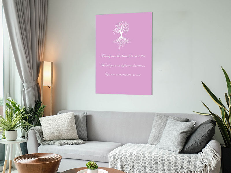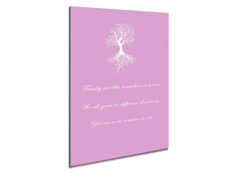 Family Quote Family Are Like Branches 2 Pink Printed on brushed aluminium dibond. A modern way to display art and easy to maintain.