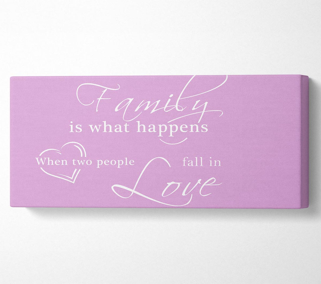 Picture of Family Quote Family Is What Happens Pink Panoramic Canvas Wall Art