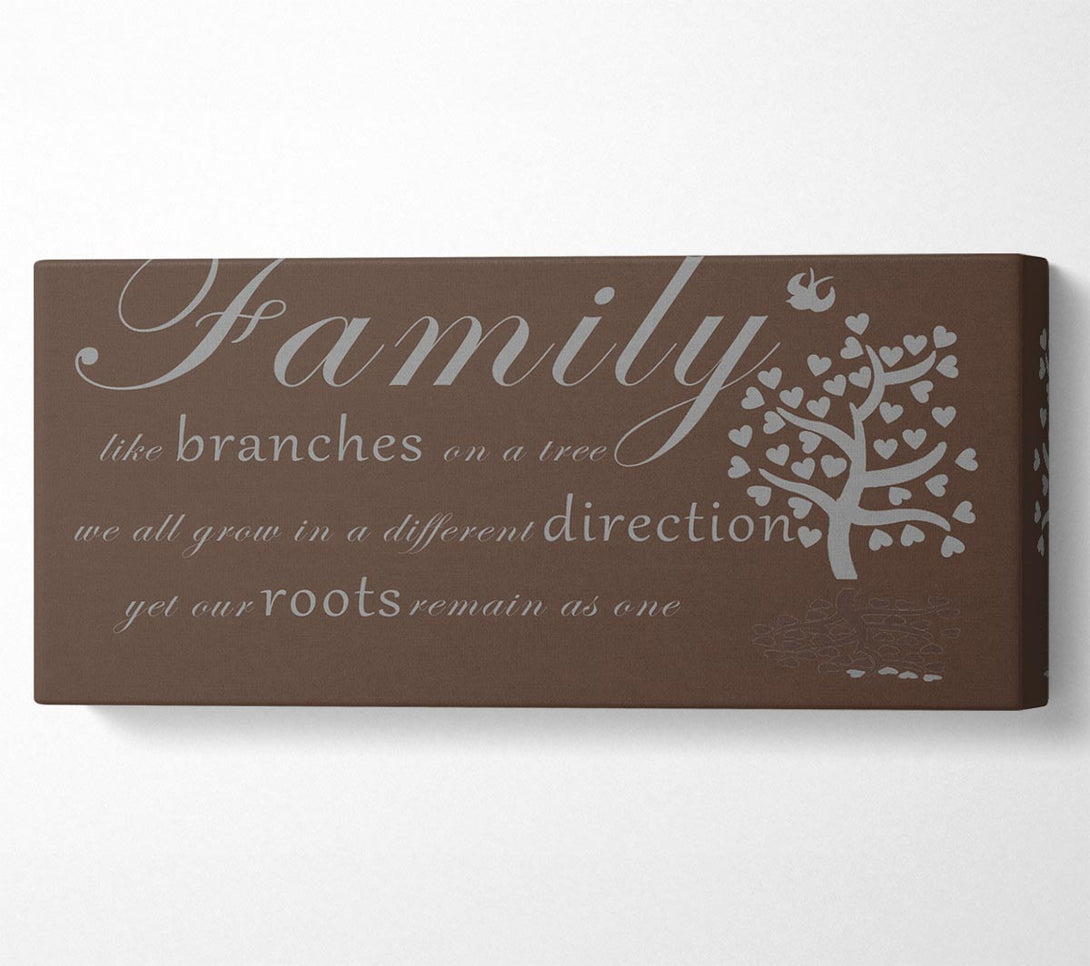 Picture of Family Quote Family Like Branches On A Tree Chocolate Panoramic Canvas Wall Art