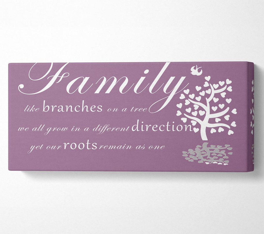 Picture of Family Quote Family Like Branches On A Tree Dusty Pink Panoramic Canvas Wall Art